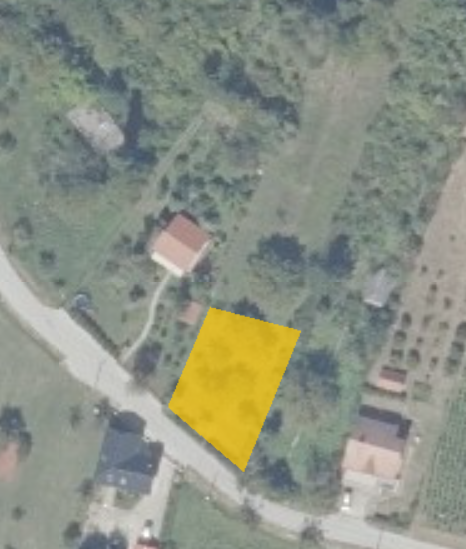 Zemljište se nalazi većim djelom u građevinskoj zoni cca 1000m2 (S) a dijelom izvan građevinske zone.