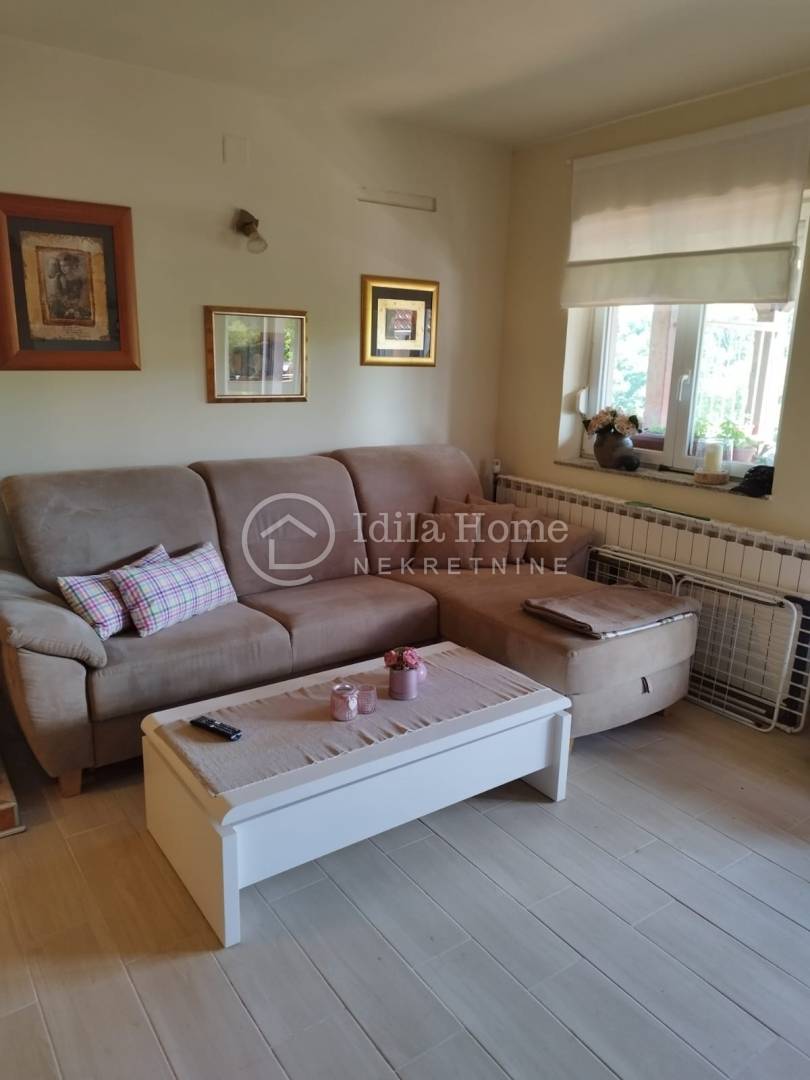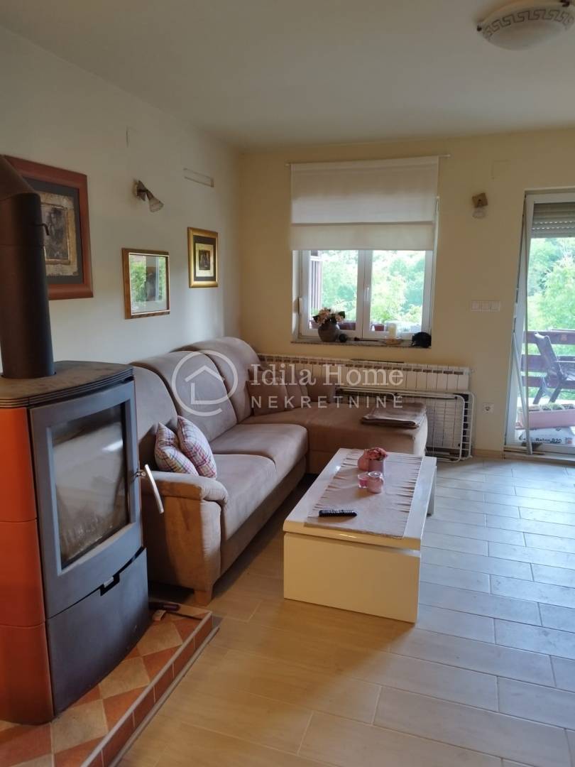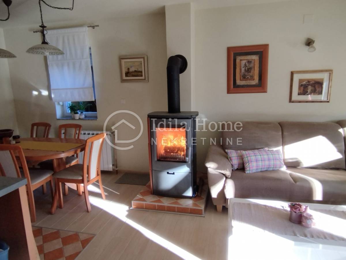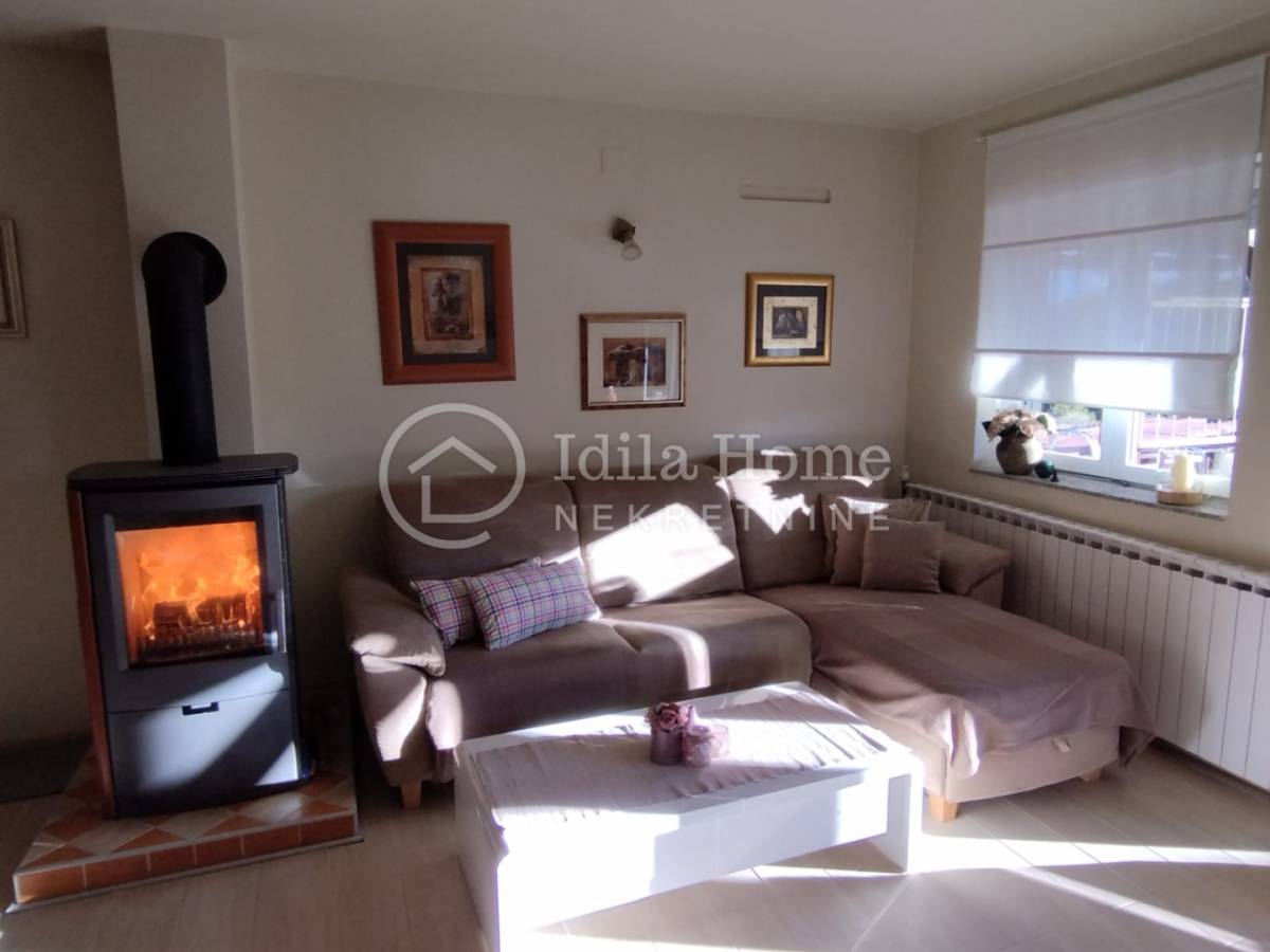 Termofasada. Etažno plinsko centralno grijanje plus peć na drva koja je smještena u dnevnom boravku i može zagrijati obje etaže.