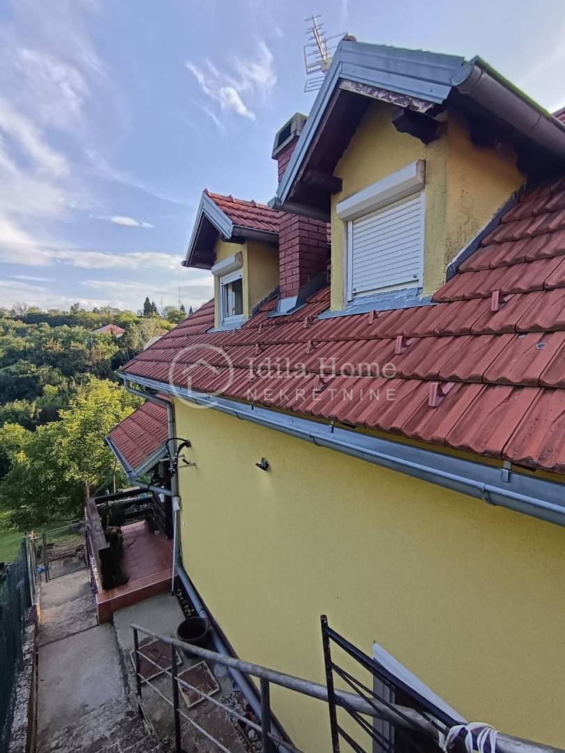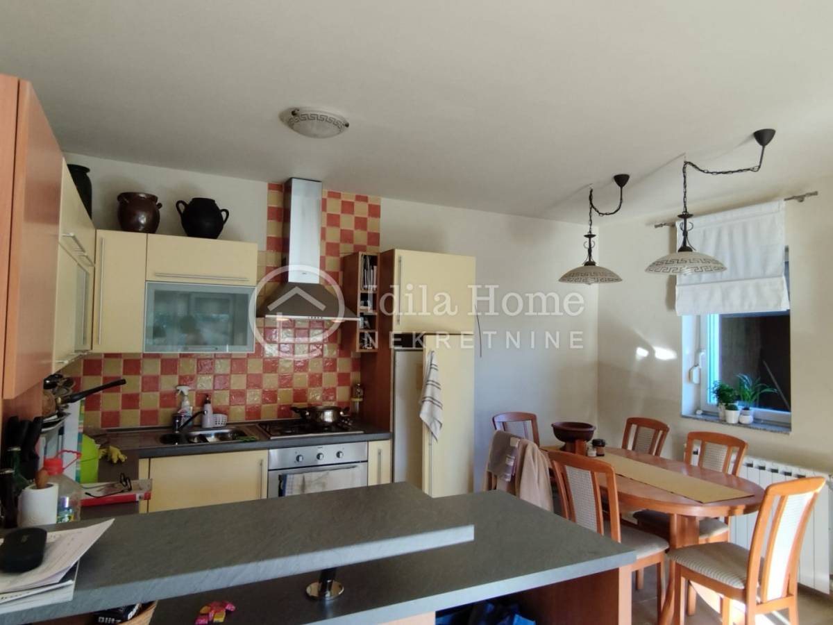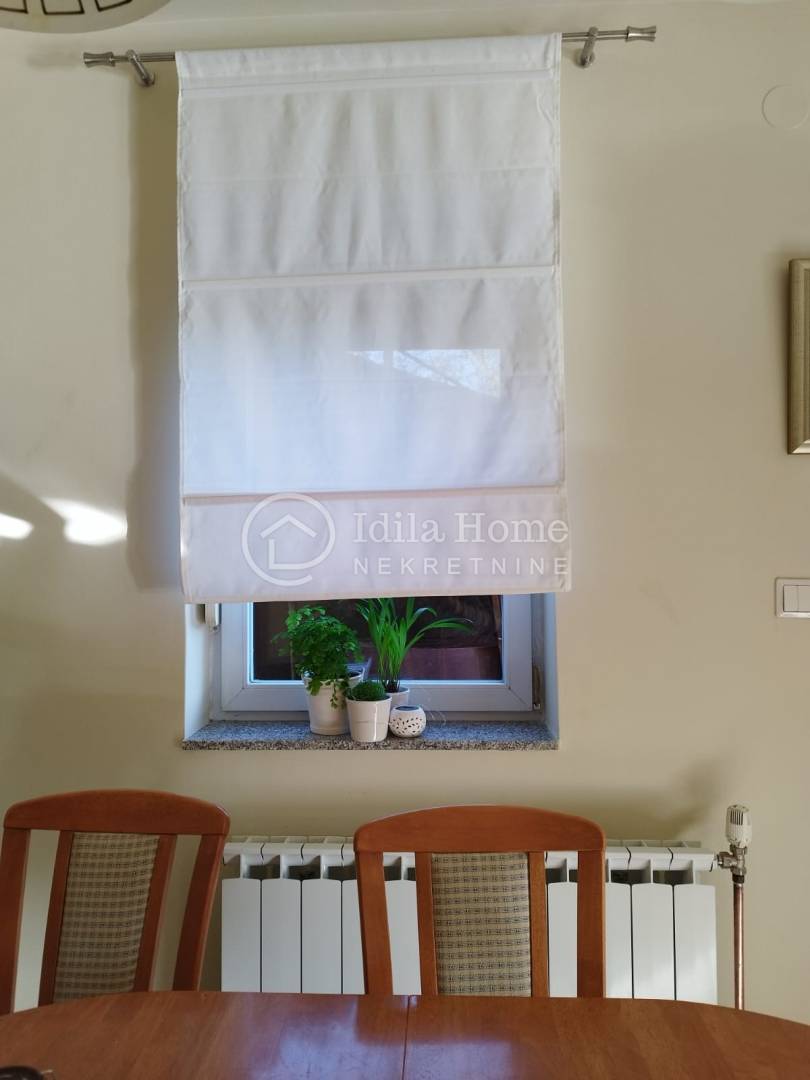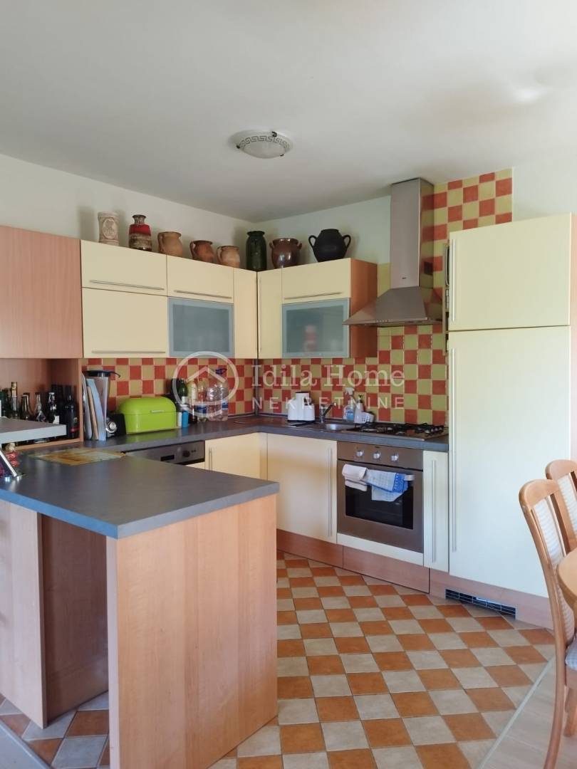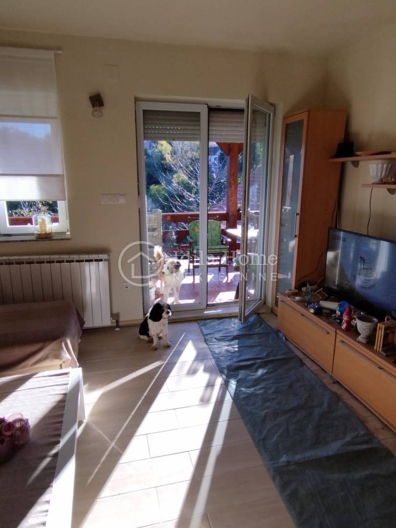 Termofasada. Etažno plinsko centralno grijanje plus peć na drva koja je smještena u dnevnom boravku i može zagrijati obje etaže.