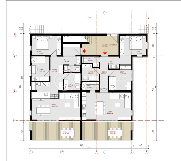 TAN 1 – PRIZEMLJE | URBANA VILA | VRT 150 m² | 2 PARKIRNA MJESTA | 295.000 €