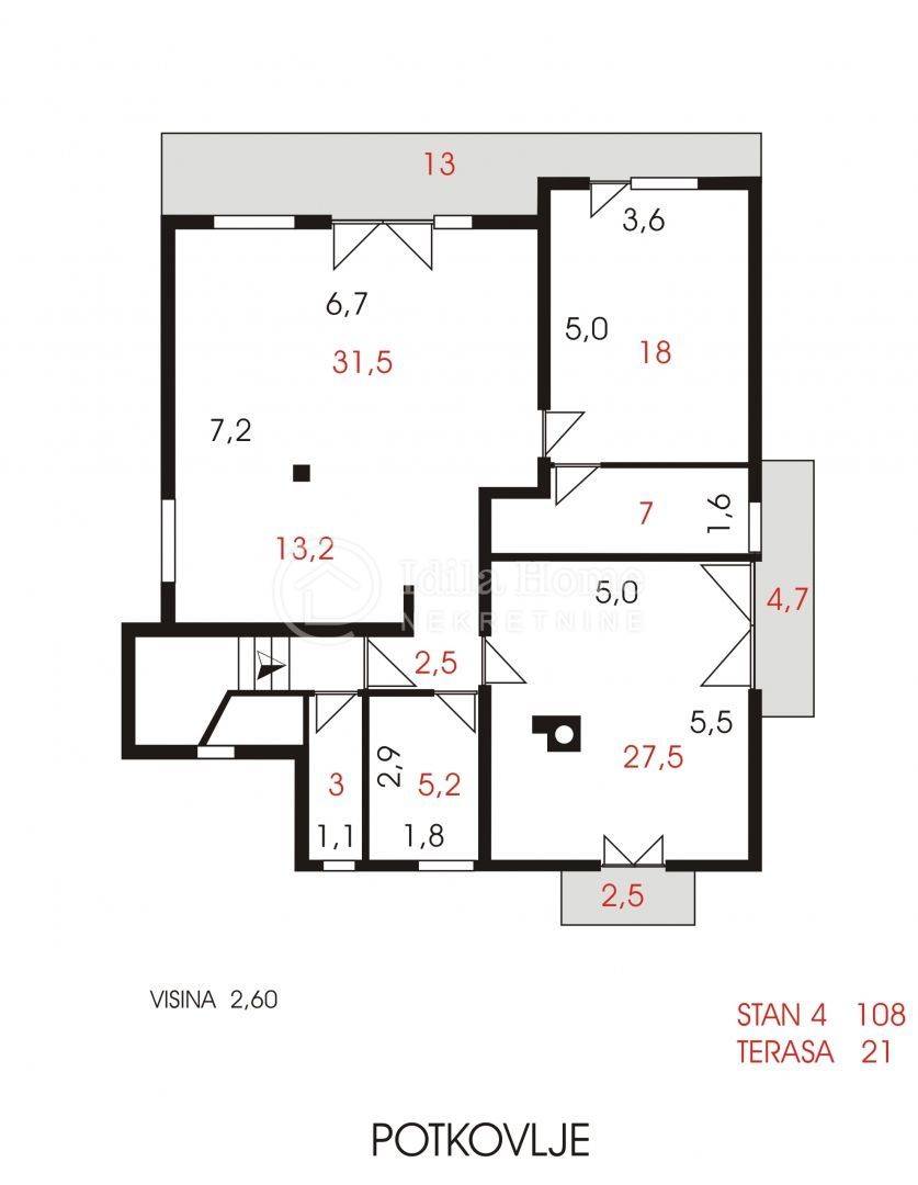 3. Stan u potkrovlju sa open space dnevnim boravkom, kuhinjom i blagovaonicom sa izlazom na balkon, jedna spavaća soba, kupaonica