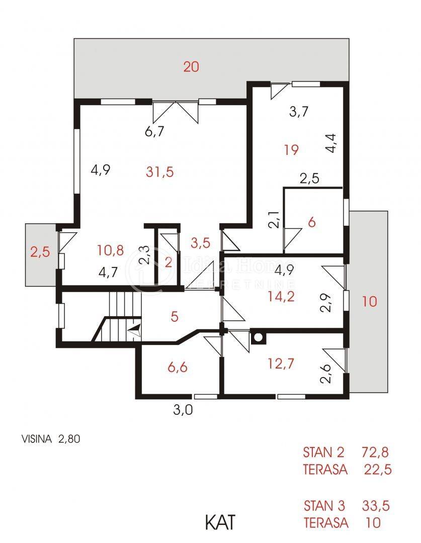 2. Stanovi na katu s istim rasporedom kao i prizemlje sa dodatkom izlaza na balkon.