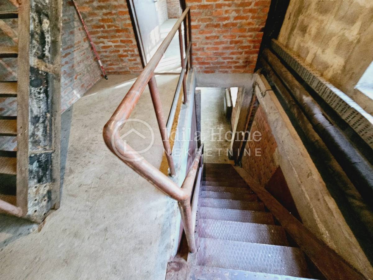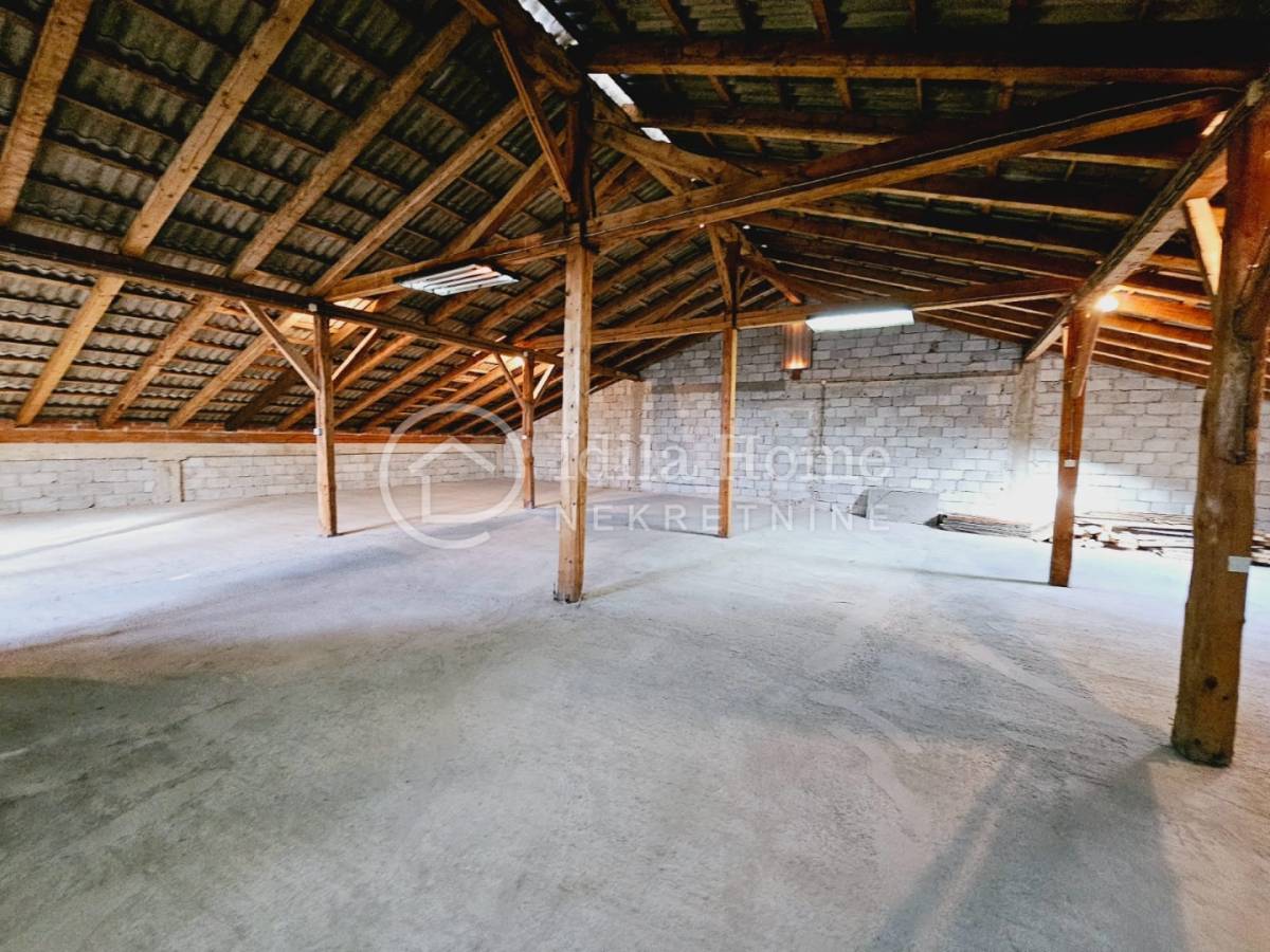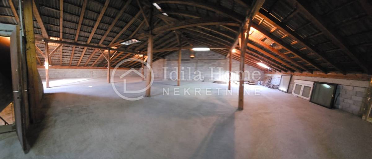 U prizemlju se nalazi proizvodno skladišni prostor ukupne tlocrtne površine 17x21m m2, koji ima osim open space prostora i dodatni