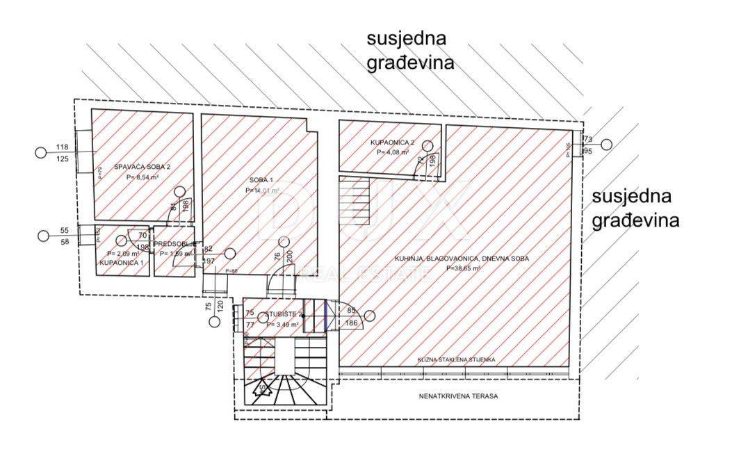 Također, stan se vrlo jednostavno može podijeliti u dvije zasebne jedinice jer su instalacije prilagođene za razne varijante prilagodbe prostora.