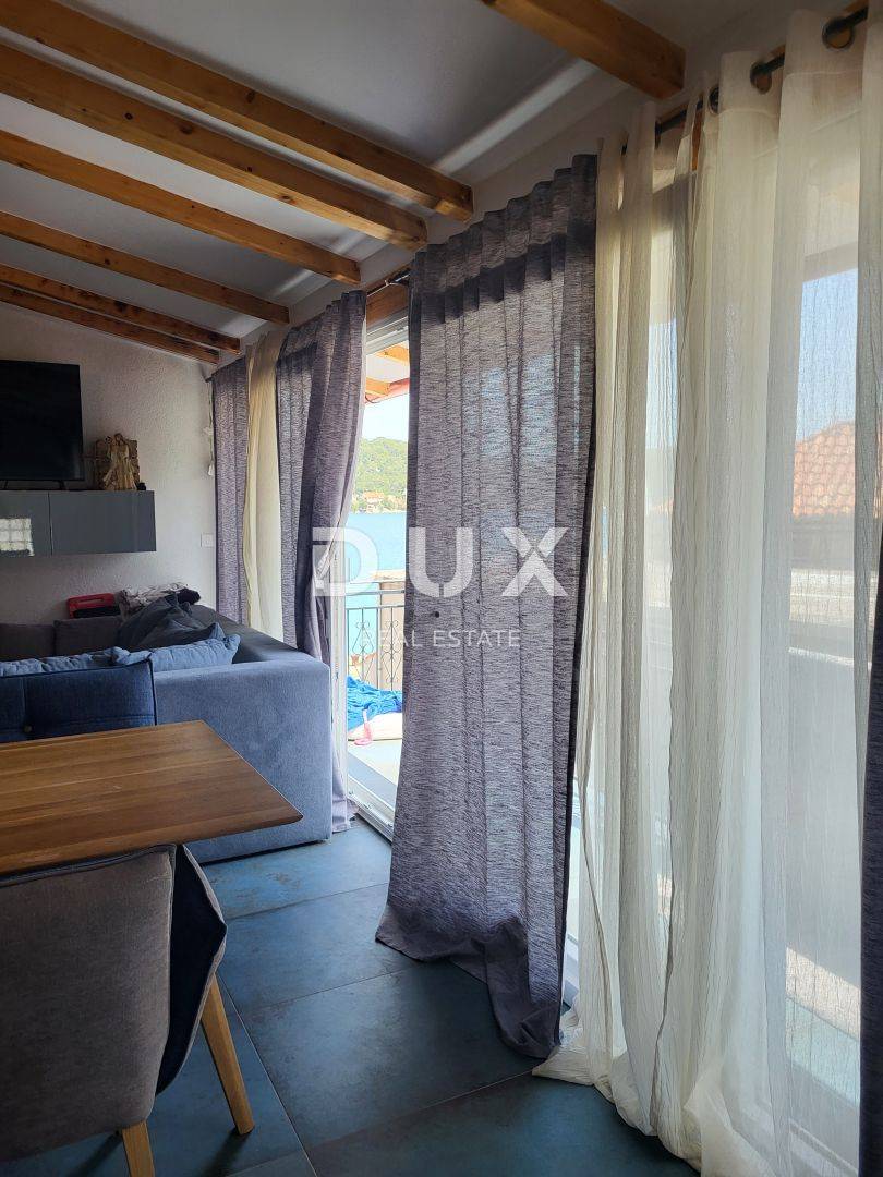 Prodaje se prostran i vrlo lijepo i kvalitetno opremljen stan u Tisnom na otoku Murteru. Stan ima 95 m2 i sastoji se od velikog dnevnog boravka s kuhinjom i blagovaonicom, dvije spavaće sobe, jedne sobe na galerijskom prostoru, dvije kupaonice i terase. Stan ima projekt i svu pripremu za proširenje za još 30 m2 u krovnom dijelu s kojim bi se dobile još dvije spavaće sobe, još jedna kupaonica i manja terasa. U tom slučaju, kapacitet stana bi bio za 12 osoba dok je trenutno moguće primiti 8 osoba. Stan je udaljen svega 20 m od plaže i ima divan pogled na more. Ova lokacija je vrlo specifična u cijenama najma u ljetnoj sezoni zbog Garden Music festivala koji se odvija čitavo ljeto, pa je dnevna cijena ovog stana vrlo visoka, što vam osigurava vrlo brz povrat investicije.