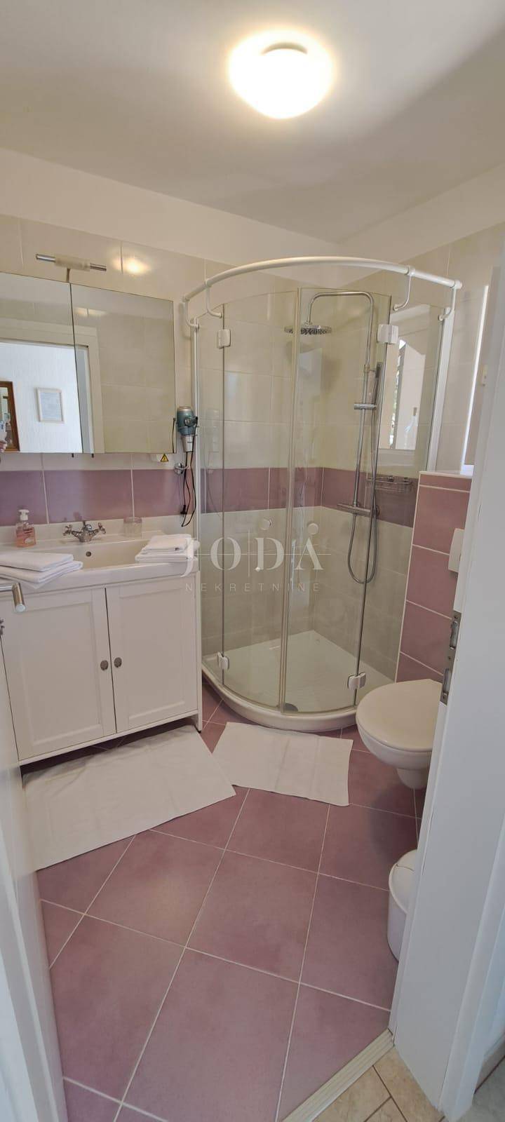 Ukupna stambena površina apartmana je 58,70 m2, pripada mu i terasa površine 26,2 m2 te dio okućnice od 40 m2 s roštiljem. Apartman čine dvije zasebne jedinice, studio apartman s kupaonicom i apartman s jednom spavaćom sobom, kupaonicom te dnevnim boravkom s kuhinjom. Svaka stambena jedinica ima izlaz na veliku terasu površine 26,2 m2 s koje se pruža djelomični pogled na more. Apartmanu pripada jedno parkirno mjesto.