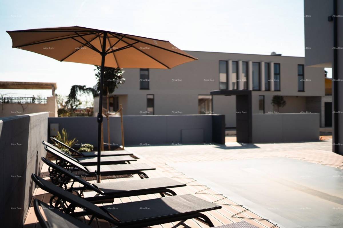 Ova moderna katnica se sastoji od prizemlja i prvog kata. Dvorište uključuje bazen i prostor za sunčanje.