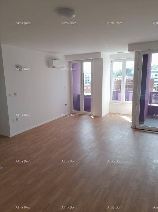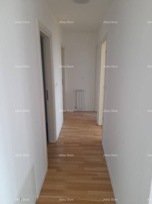Stan ukupne površine 103.65 m2, sastoji se od hodnika-predprostora, dnevnog boravka+kuhinje, tri sobe, kupaonice, WC-a, dvije loggie.