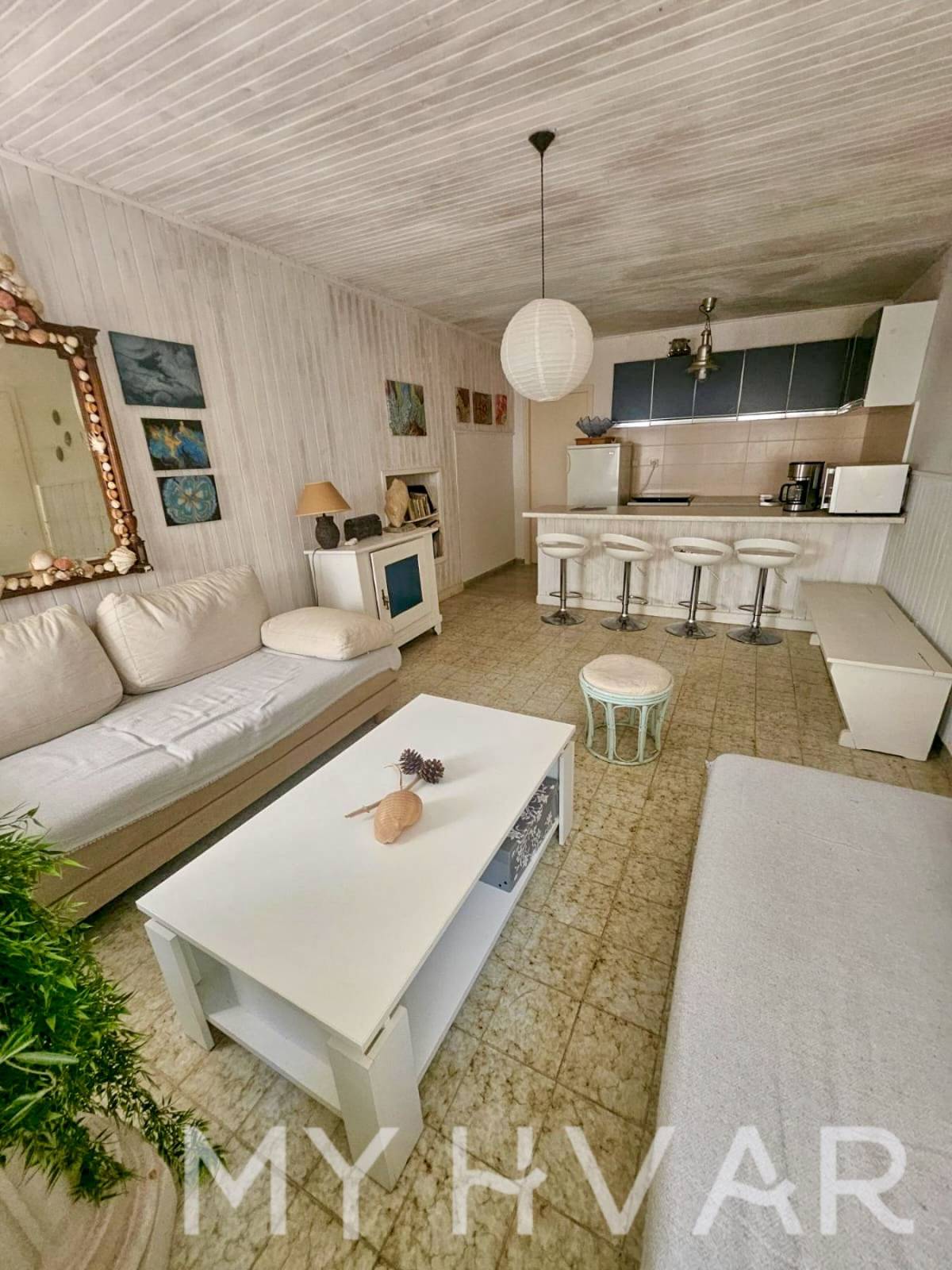 Na povišenom prizemlju, iznad razine ulice i rive, nalazi se prostrana kuhinja povezana s blagovaonicom i dnevnim boravkom, praktična ostava te moderno uređena kupaonica. Unutarnje stepenice vode na prvi kat, gdje su smještene tri prostorije: jedna je uređena kao dodatni dnevni boravak s kuhinjom, dok su preostale dvije namijenjene kao spavaće sobe. Jedna od soba ima izravan ulaz iz dnevnog boravka, dok se u drugu ulazi iz hodnika. Na ovom katu nalazi se i dodatna kupaonica s tušem.