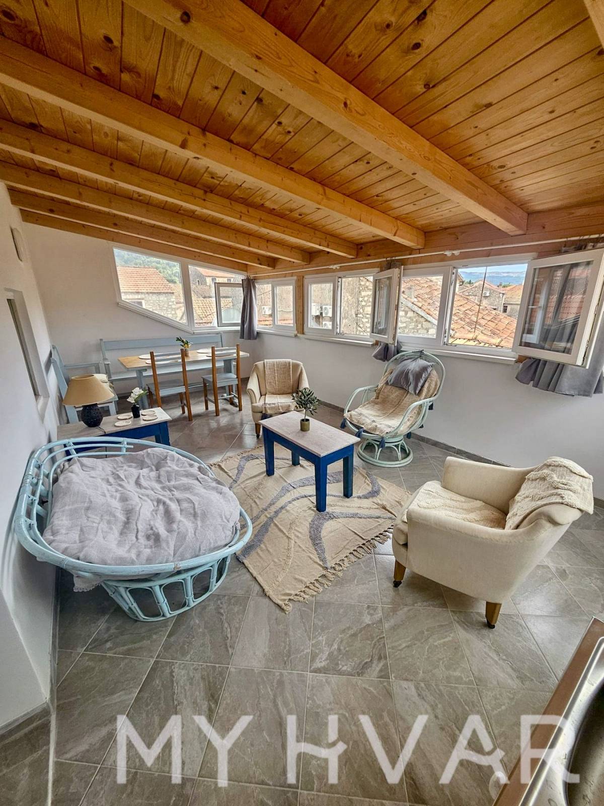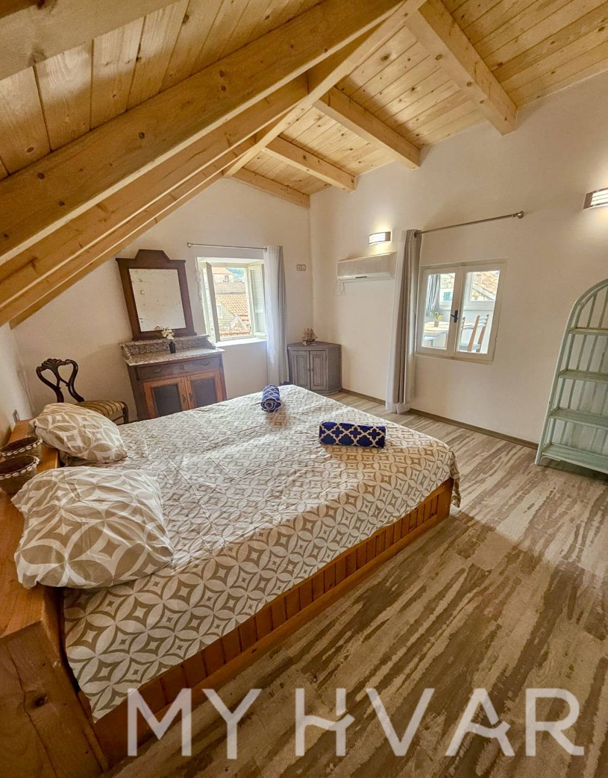 Ova šarmantna kuća, smještena u samom centru Starog Grada, prostire se kroz tri etaže i nudi savršenu kombinaciju tradicionalnog dalmatinskog duha i udobnosti modernog života.
