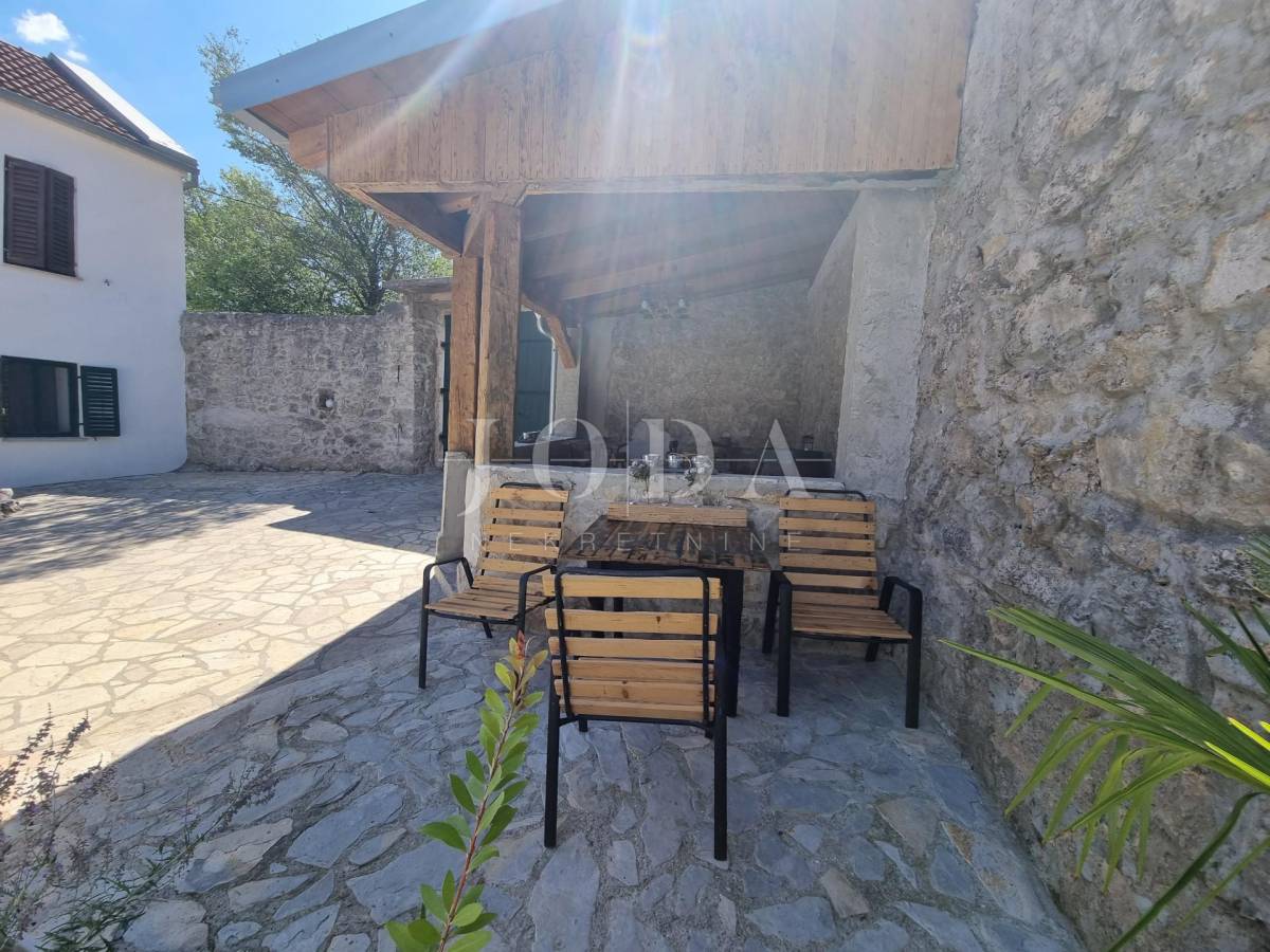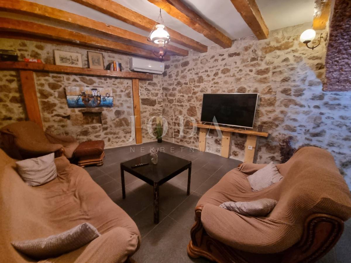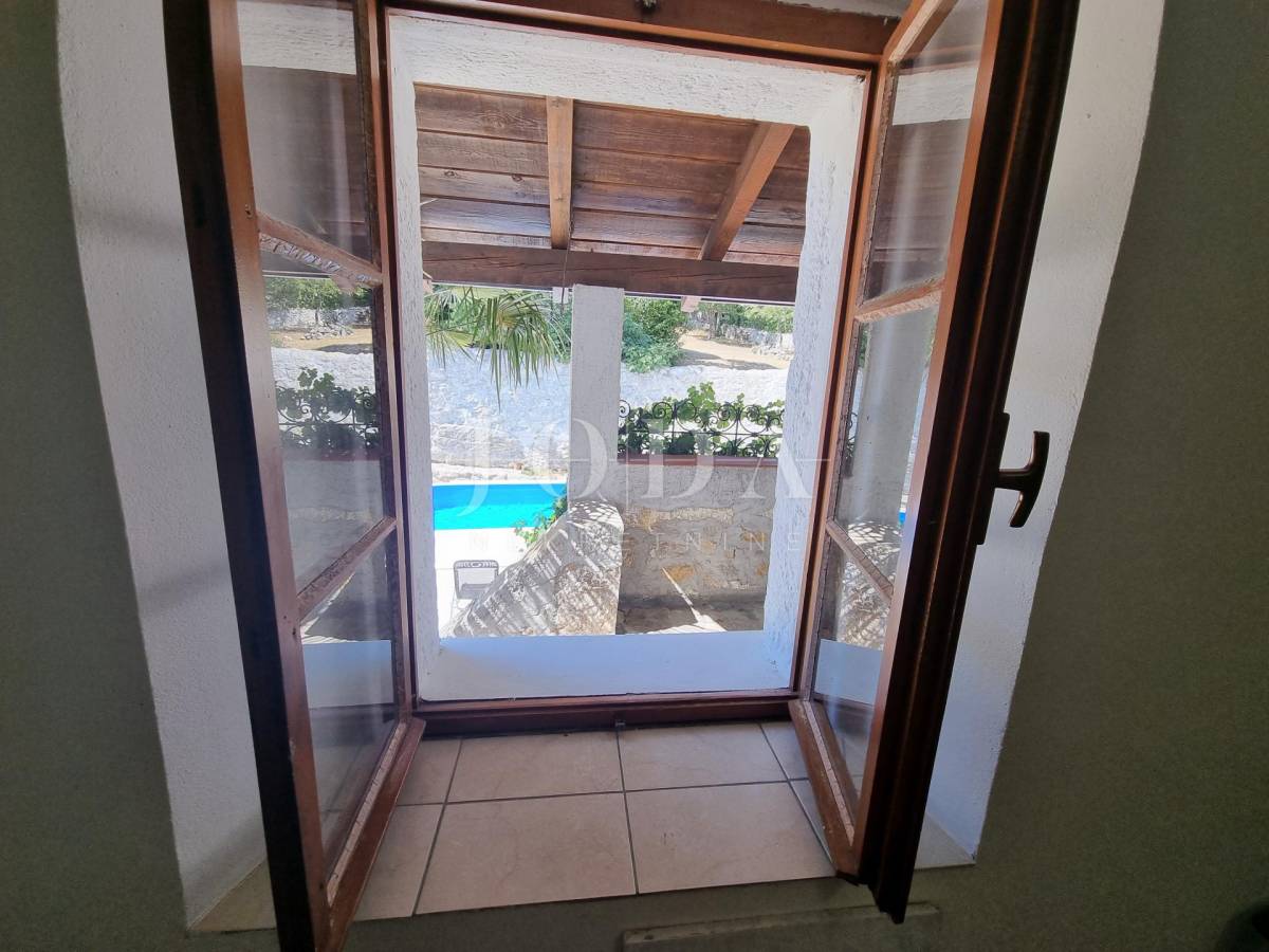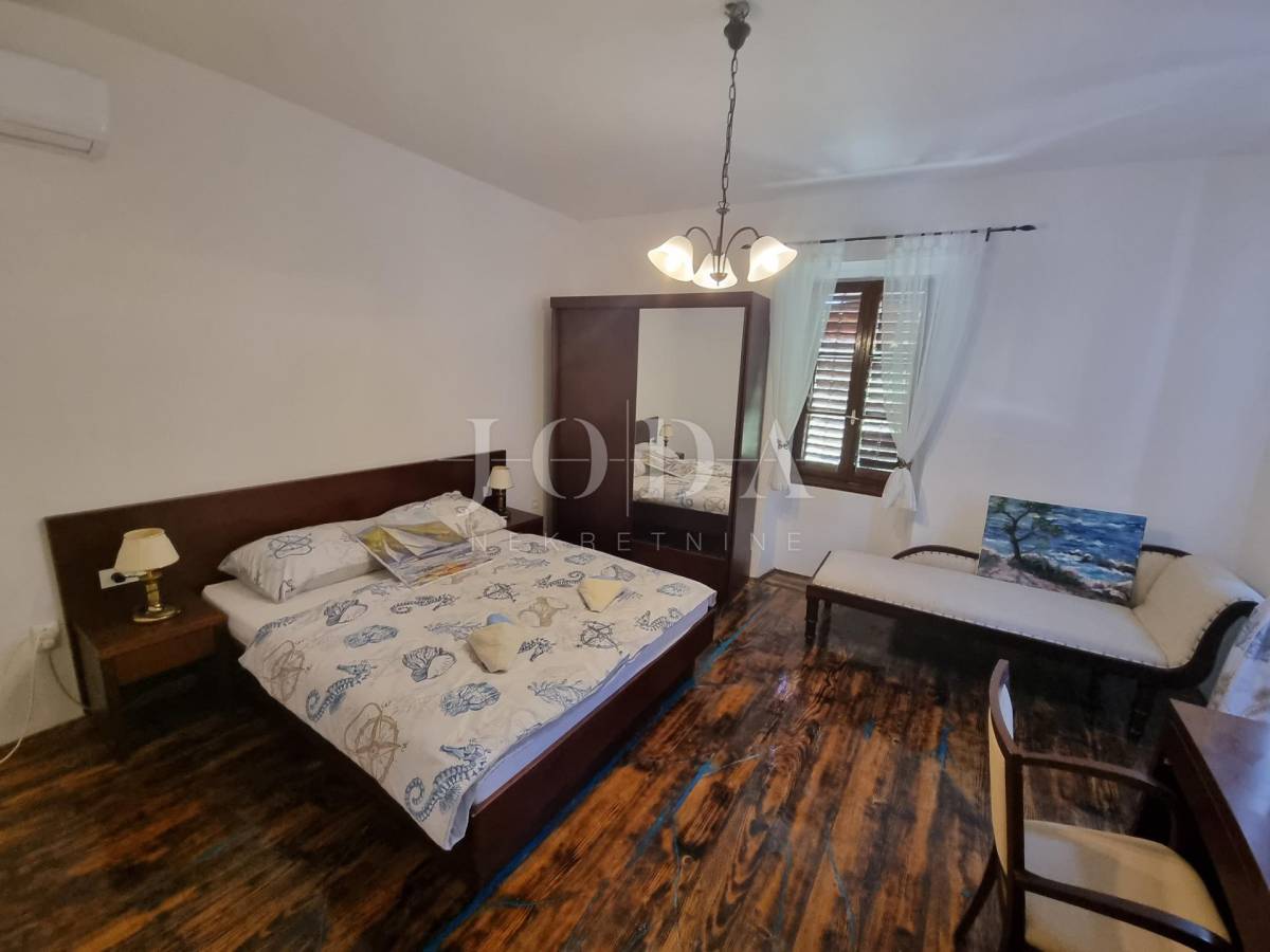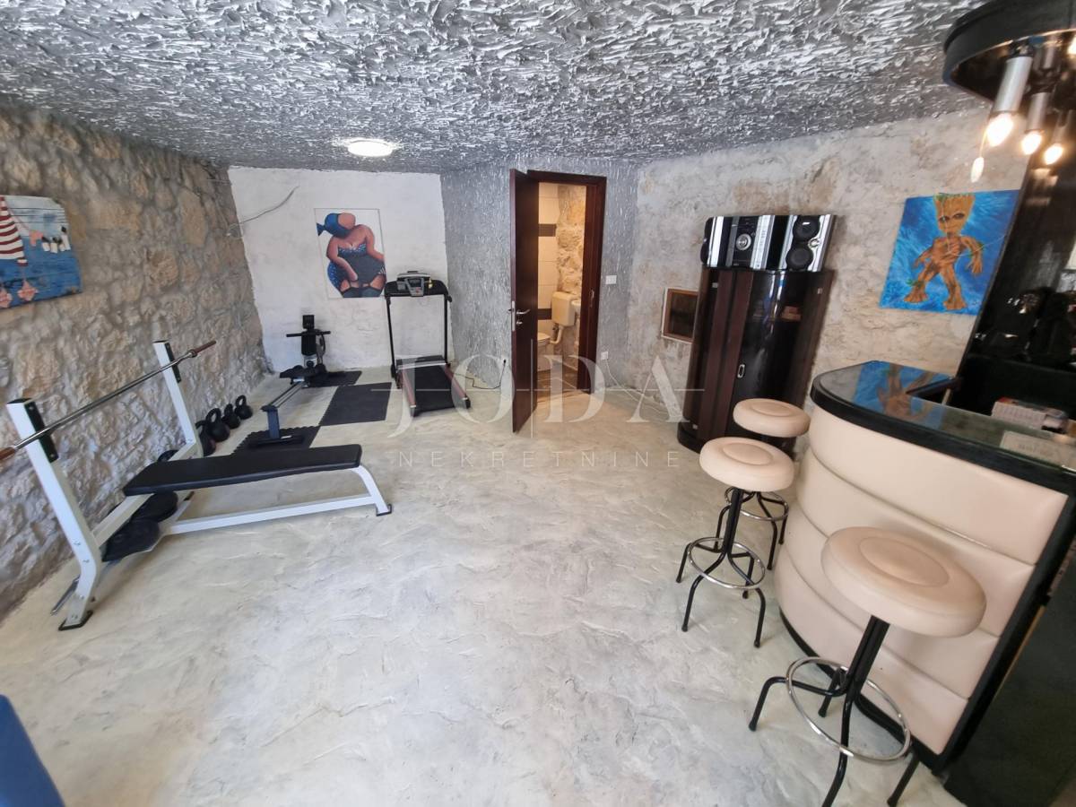 Dvije kuće u lijepo uređenoj i intimnoj okućnici sa bazenom. Parkirna mjesta se nalaze sa dvije strane sa ukupno šest parkirnih mjesta. U prvoj kući koja se sastoji od prizemlja i kata nalaze se spavaća soba, kupaonica i toalet. Unutarnjim stubištem se dolazi na kat gdje su prostrane dvije spavaće sobe. U drugoj kući u prizemlju se nalazi konoba u kojoj su smješteni dnevni boravak i kuhinja. U prostoriji sa zasebnim vanjskim ulazom je fitnes soba, te toalet. Vanjskim stubištem se dolazi na terasu sa koje se ulazi na kat druge kuće gdje se nalazi spavaća soba, kupaonica, te dodatna prostorija. Nekretnina idealna za bavljenje turizmom.