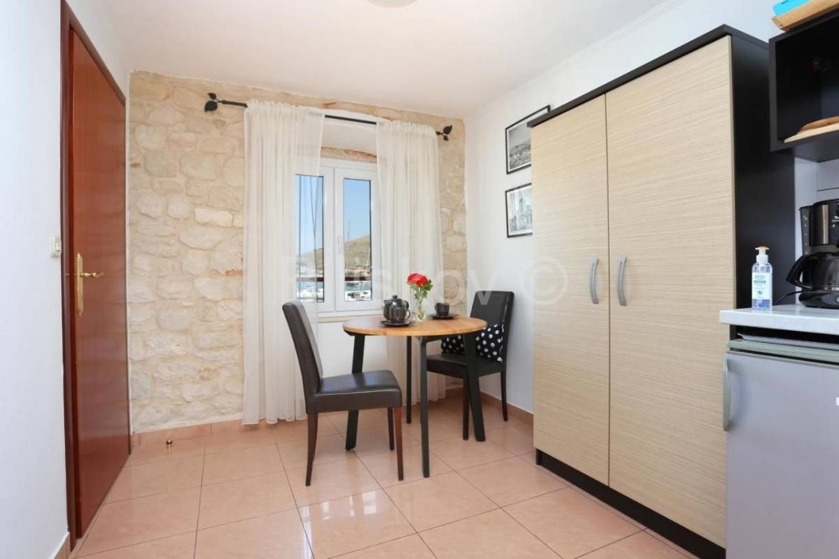 Smještena u prvom redu uz more, ova kuća se proteže na prizemlje i tri kata, nudeći jedinstven pogled na UNESCO centar Trogira i trogirsku rivu. Prizemlje je rezervirano za poslovni prostor, idealno za one koji žele raditi s pogledom na more ili koji planiraju razviti vlastiti posao u turističkom okruženju.