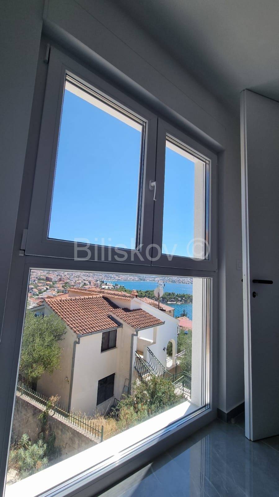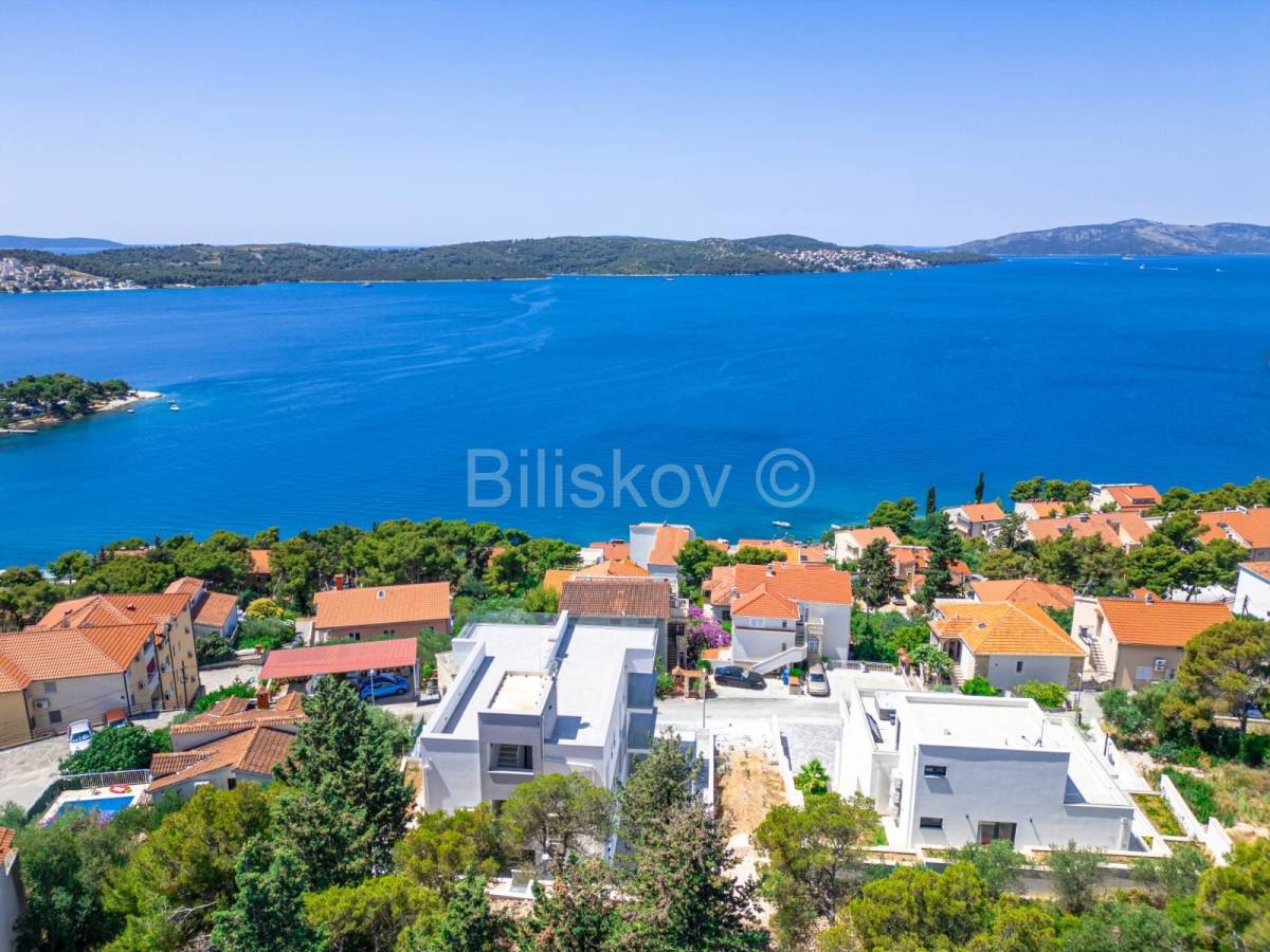 Ovaj nenamješteni penthouse površine 146 m², smješten na drugom katu moderne vile u Trogiru, pruža savršen prostor za uređenje prema vlastitim željama. Stan dolazi s prostranom privatnom krovnom terasom s koje se pruža spektakularan pogled na more i okolicu.