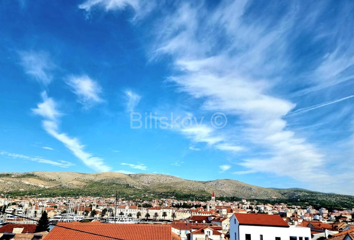 Ova dvojna kuća, smjestila se na lijepoj lokaciji, u blizini centra grada Trogira, te svega nekoliko minuta lagane šetnje od stare gradske jezgre zaštićene UNESCO-om. Kuća se proteže preko tri etaže te je sjeverno-zapadne orijentacije.U prizemlju kuće je pripadajući dvor s ulazom u konobu, te još jednu dodatnu prostoriju. Sa zapadne strane je zaseban ulaz na prvu etažu i dvoetažni dvosobni apartman povezan unutrašnjim stepeništem. Na prvoj etaži je kuhinja, dnevni boravak, kupaonica i jedna spavaća soba, dok se na drugoj etaži nalazi prostrana spavaća soba s izlazom na veliku terasu. Terasa je okrenuta na sjeverozapad i s nje se pruža panoramski pogled centar grada i trogirsku rivu.Kući pripada i pomoćni objekt s dvorištem od 93 m² na kojem se nalazi jedno parkirno mjesto.