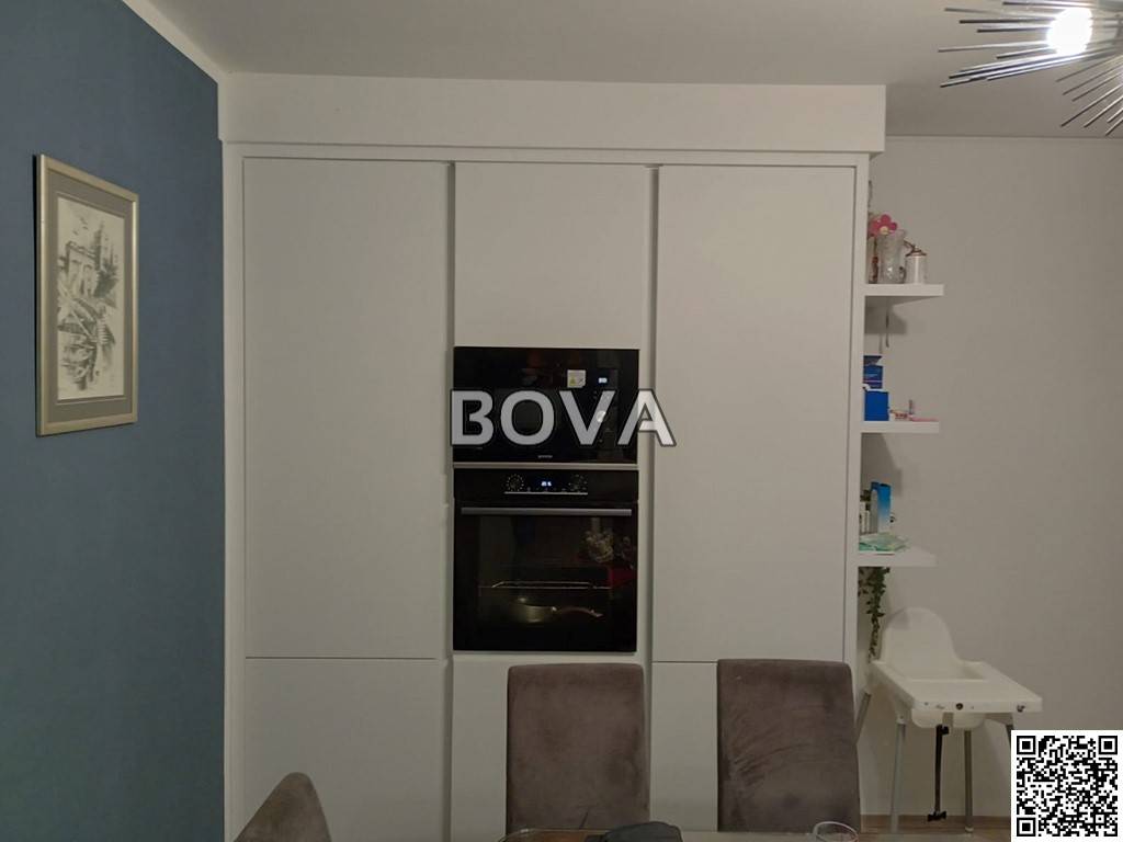sastoji se od odvojene kuhinje koja ima ostavu i izlaz na balkon, toaleta, kupatila, tri sobe, odvojeni dnevni boravak koji ima izlaz na balkon s pogledom na more;