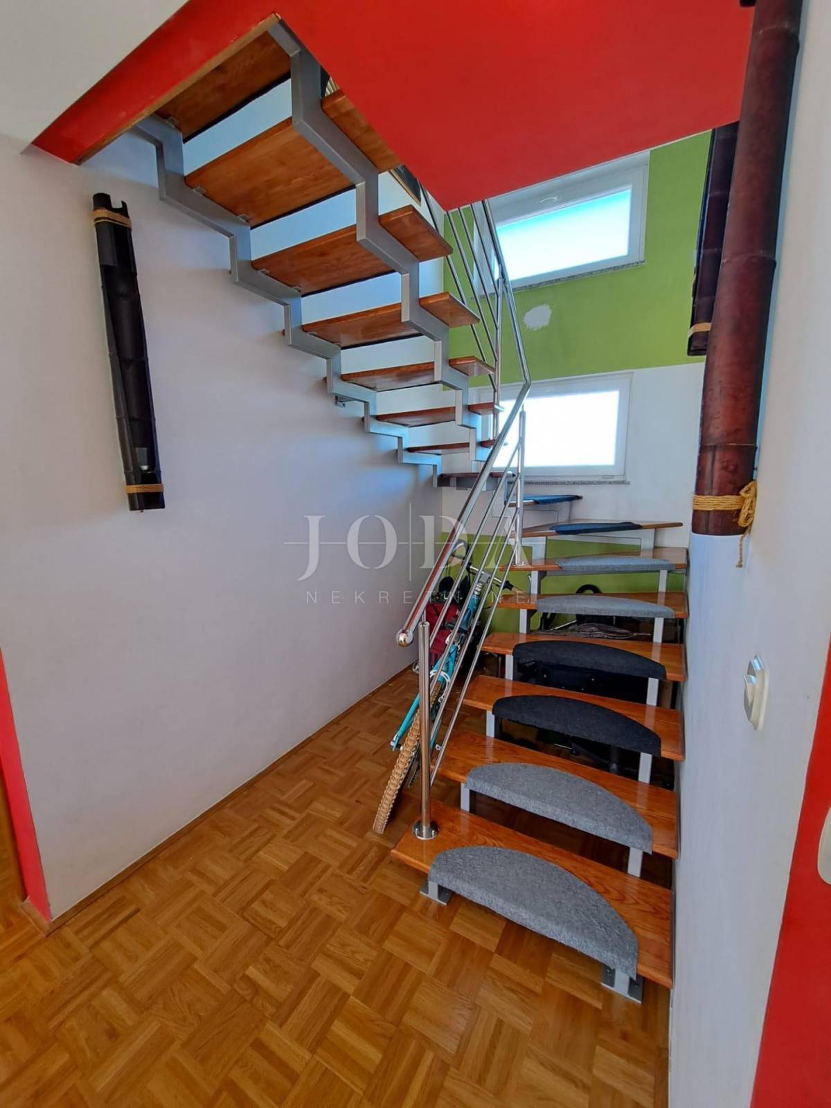 Apartmanu pripadaju dva parkirna mjesta. Vanjskim stubištem se dolazi do ulaza. Sastoji se od open space dnevnog boravka, kuhinje i blagavaonice i kupaonice te balkona na prvoj etaži. Unutarnjih stepeništem se dolazi na drugu etažu apartmana gdje se nalaze tri spavaće sobe i kupaonice. Apartman je kompletno namješten i opremljen te se kao takav i prodaje. Ima PVC stolariju i klimatiziran je. Grijanje je moguće i na kruta goriva. Nekretnina se nalazi na odličnoj lokaciji blizu centra grada Krka i svih potrebnih sadržaja. Prilika!