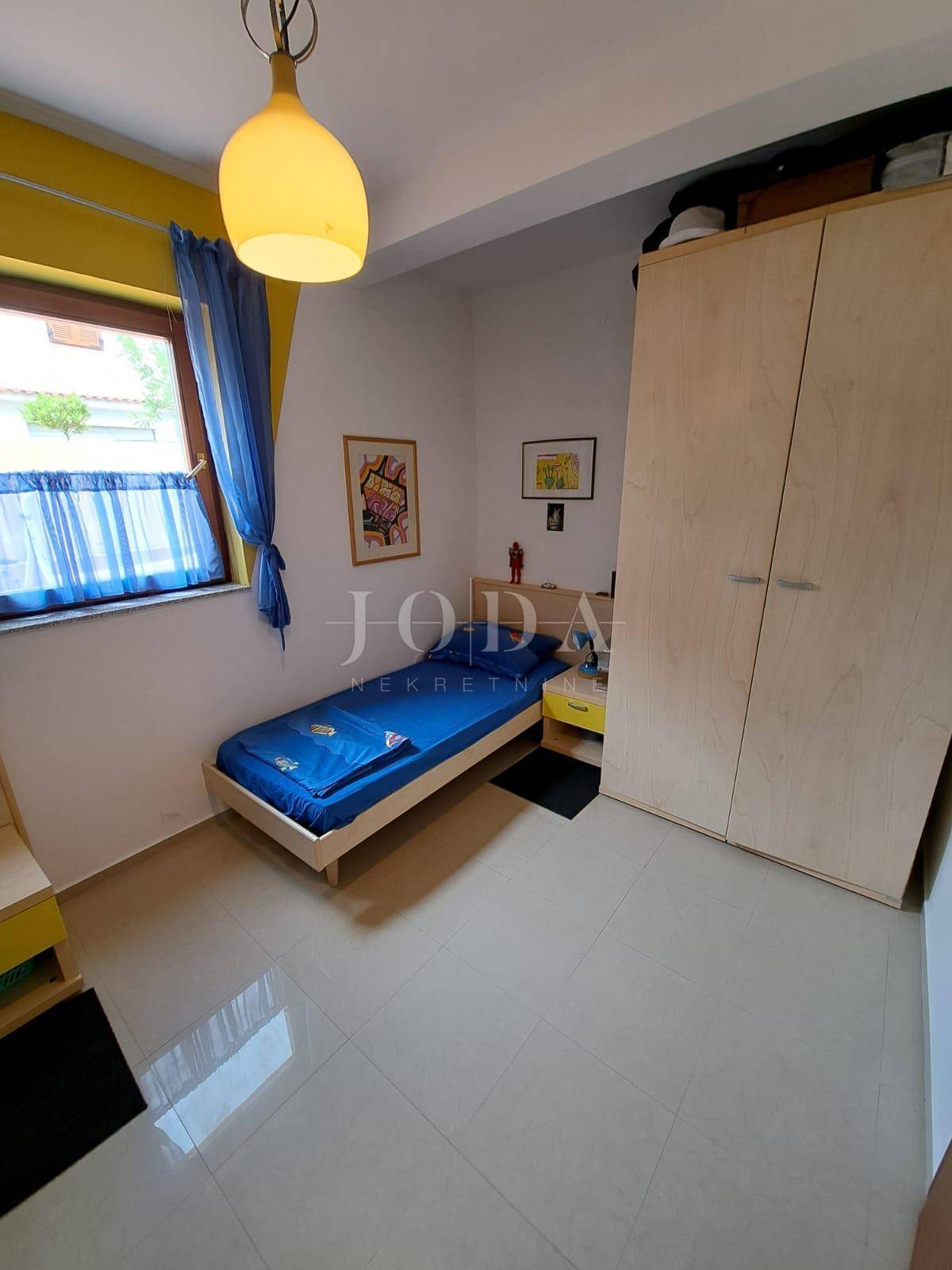 Stan se sastoji od terase, open space dnevnog boravka s kuhinjom, tri spavaće sobe, kupaonice, ostave te gostinjskog WC-a. Površina stana je 80m2, a pripada mu jedno parkirno mjesto, prostrana terasa i uređena okućnica. Zgrada je izgrađena 2005. godine i nalazi se na odličnoj mirnoj lokaciji samo 600m od mora. Idealna nekretnina za iznajmljivanje, ali i za život kroz cijelu godinu!