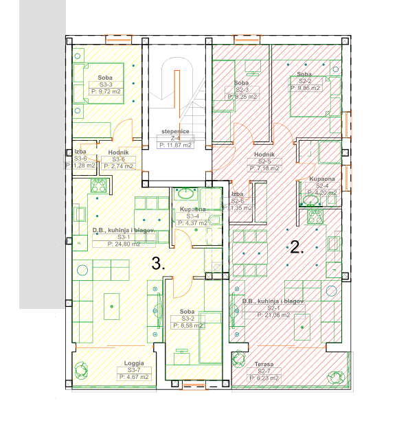 Na odličnoj urnaboj lokaciji,u blizini svih sadržaja a povučeno od prometa,prodaje se stan u manjoj stambenoj zgradi novijeg datuma gradnje.