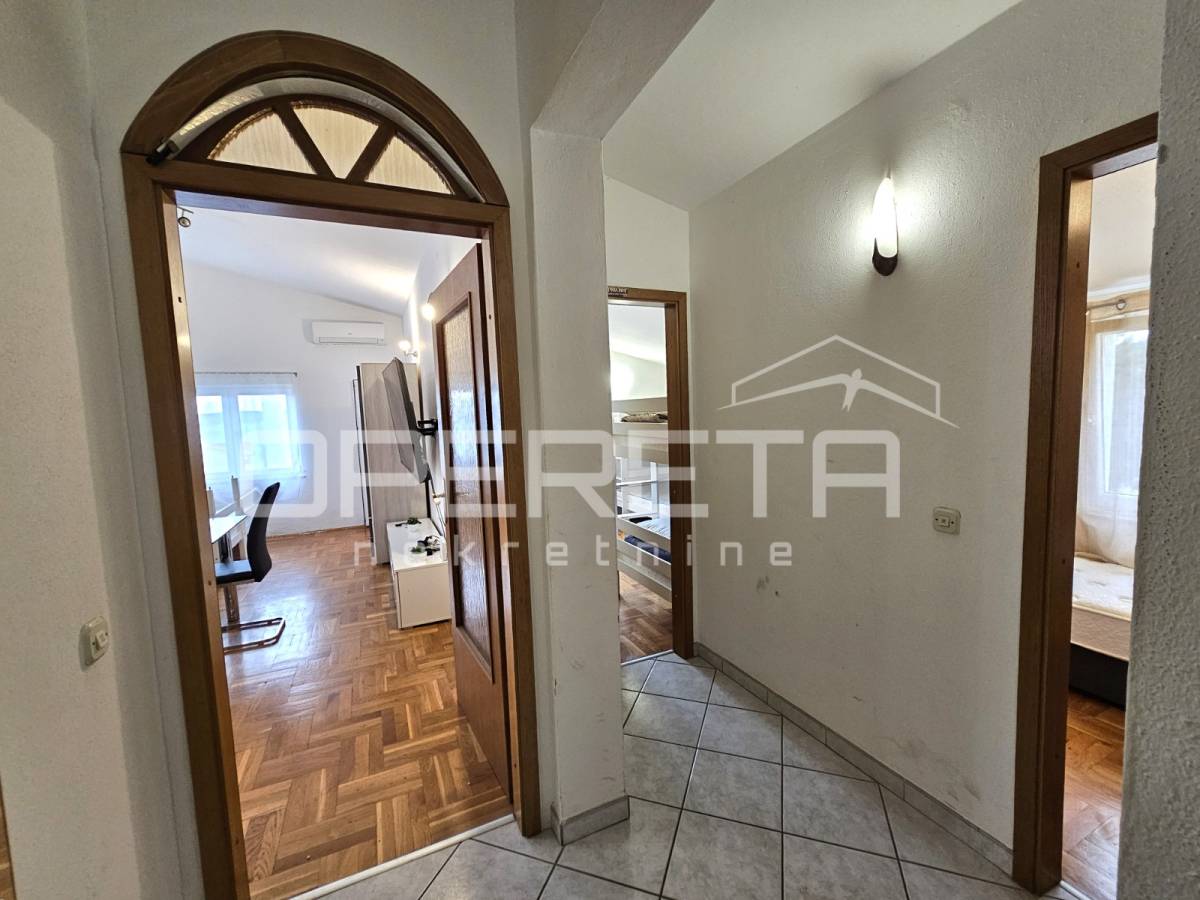 Do uređene plaže je svega par minuta lagane šetnje, što stan činiti posebno privlačnim kako za stanovanje, tako i za turistički najam.