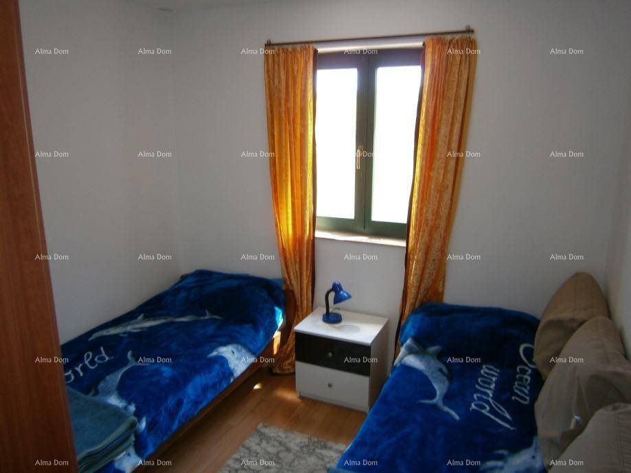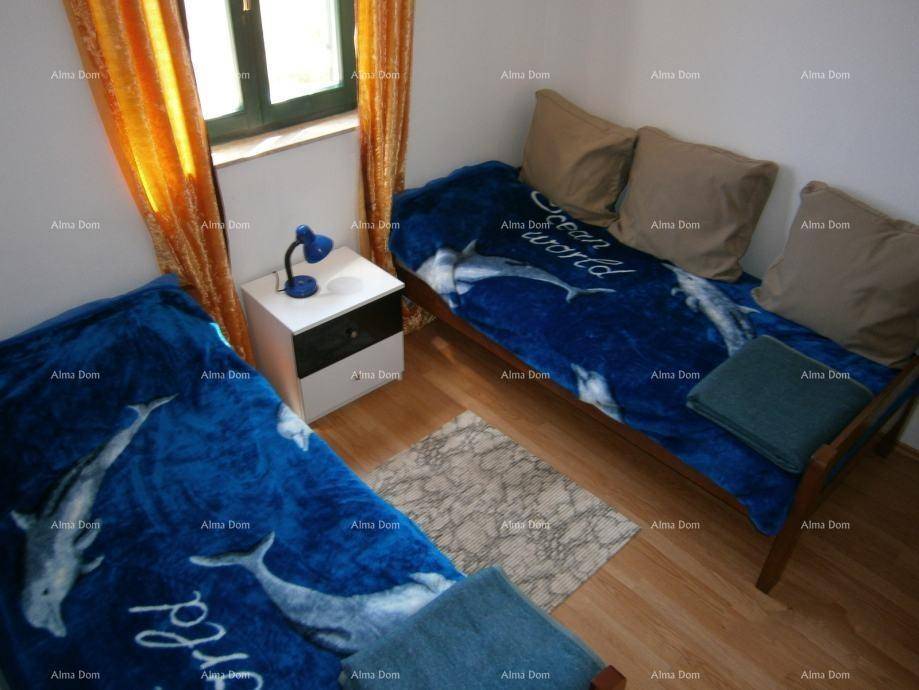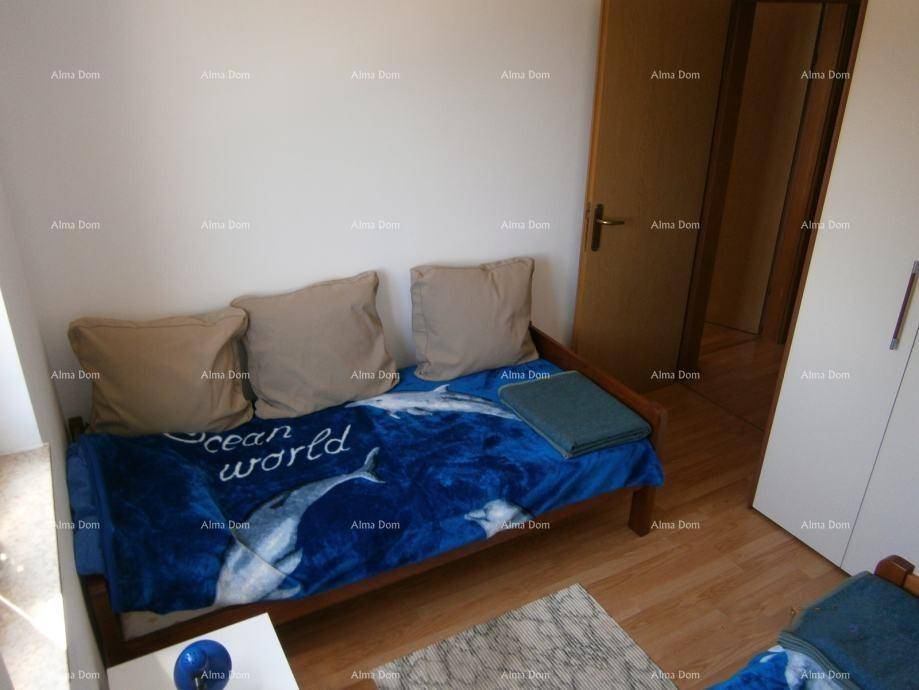 Nekretnina se sastoji od prostranog dnevnog prostora povezanog s kuhinjom te tri spavaće sobe, što je čini pogodnom za obiteljsko stanovanje ili odmor. Dodatnu vrijednost pružaju vanjski prostori – zapadno orijentirana terasa površine 7 m², opremljena roštiljem i blagovaonskim stolom za četiri osobe, kao i istočno orijentirana lođa od 5 m².