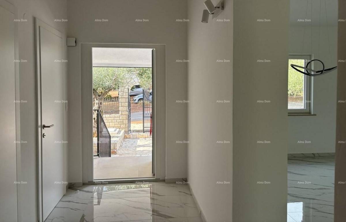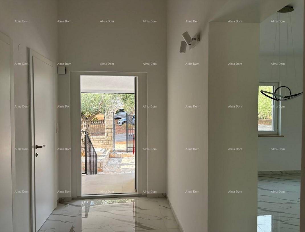 Ispred kuće nalazi se bazen dimenzija 10x4 m sa slapom, okružen mediteranskim biljem, palmama i starim maslinama, koji pružaju ugođaj prave oaze mira.