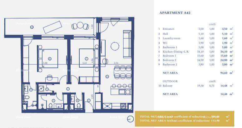 Apartman A-42 (113,90 m2) nalazi se na 3.katu: