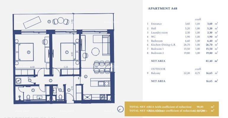 Apartman A-48 (103,60 m2) nalazi se na 3.katu: