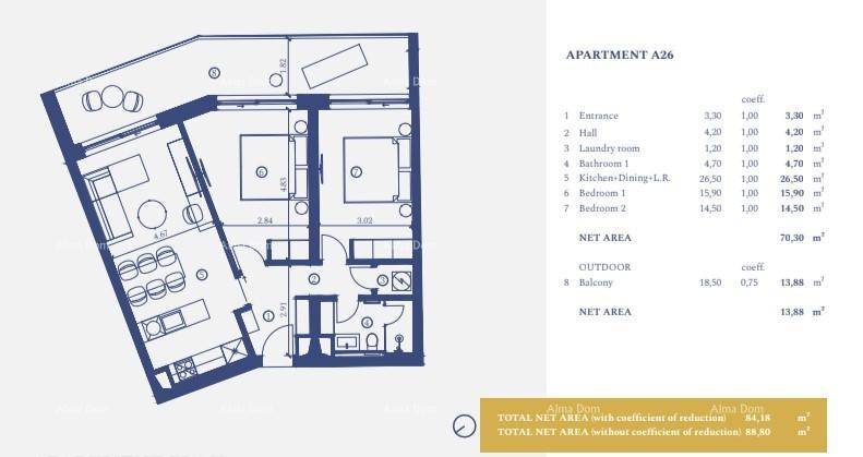 Apartman A-26 (91.8 m2) nalazi se na 2.katu: