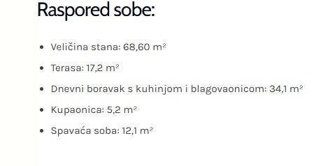 Stan S31, ukupne površine 68,60 m², nalazi se na 1.katu zgrade i sastoji se od: