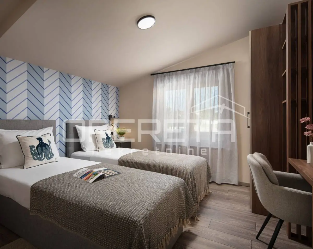 Kuća je opremljena klima uređajima u svim prostorijama, a grijanje je omogućeno i putem radijatora. Prodaje se potpuno namještena i spremna za useljenje ili turističko iznajmljivanje.
