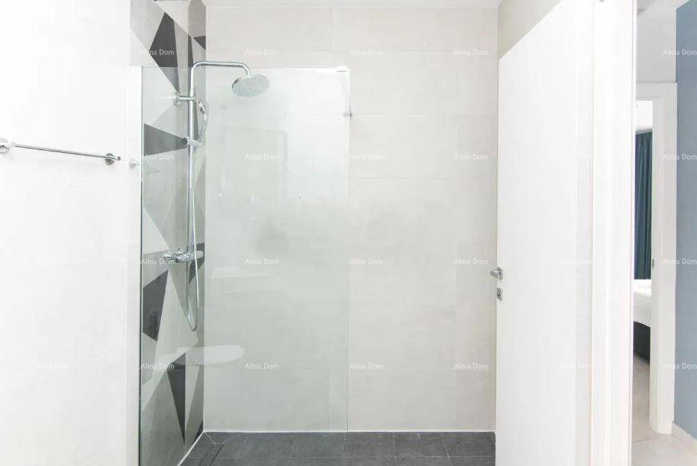 Apartman nudi prostran i funkcionalan raspored koji uključuje veliki dnevni boravak s kuhinjom i blagovaonicom, tri spavaće sobe, dvije kupaonice te utility prostoriju s dodatnim WC-om. Posebna vrijednost ovog penthousea je činjenica da se iz svake prostorije pruža jedinstven pogled na more i park koji se nalazi ispred zgrade, što stanu daje iznimnu svjetlost i osjećaj otvorenosti.
