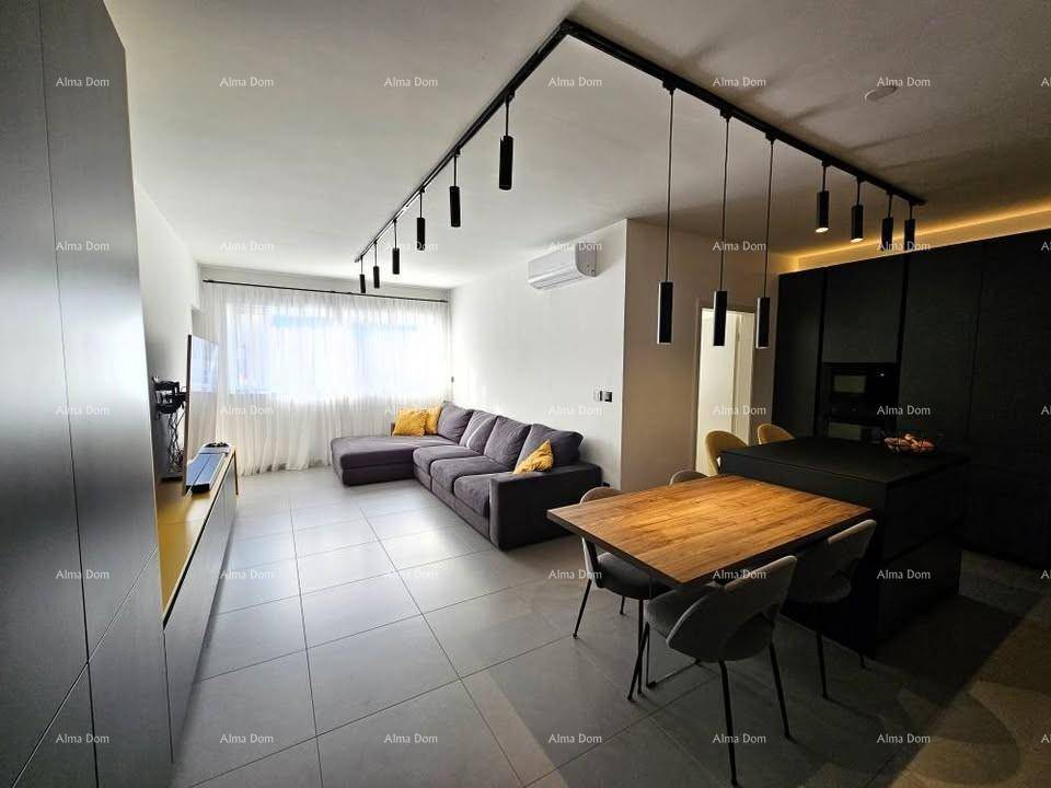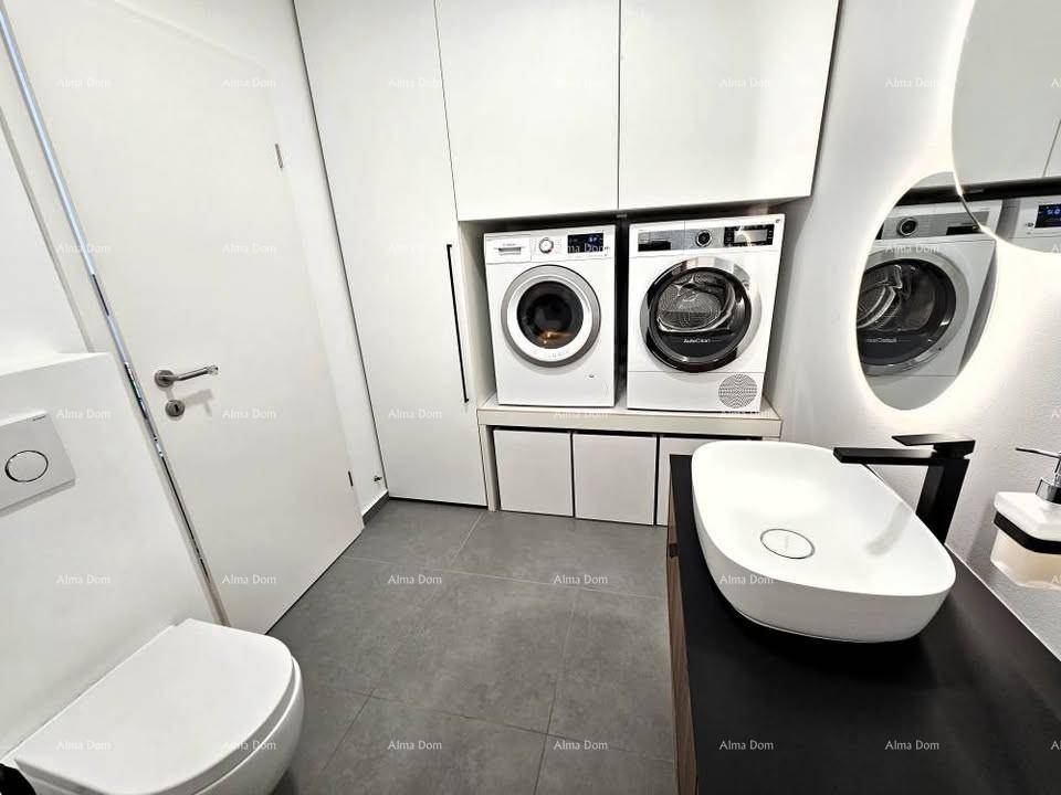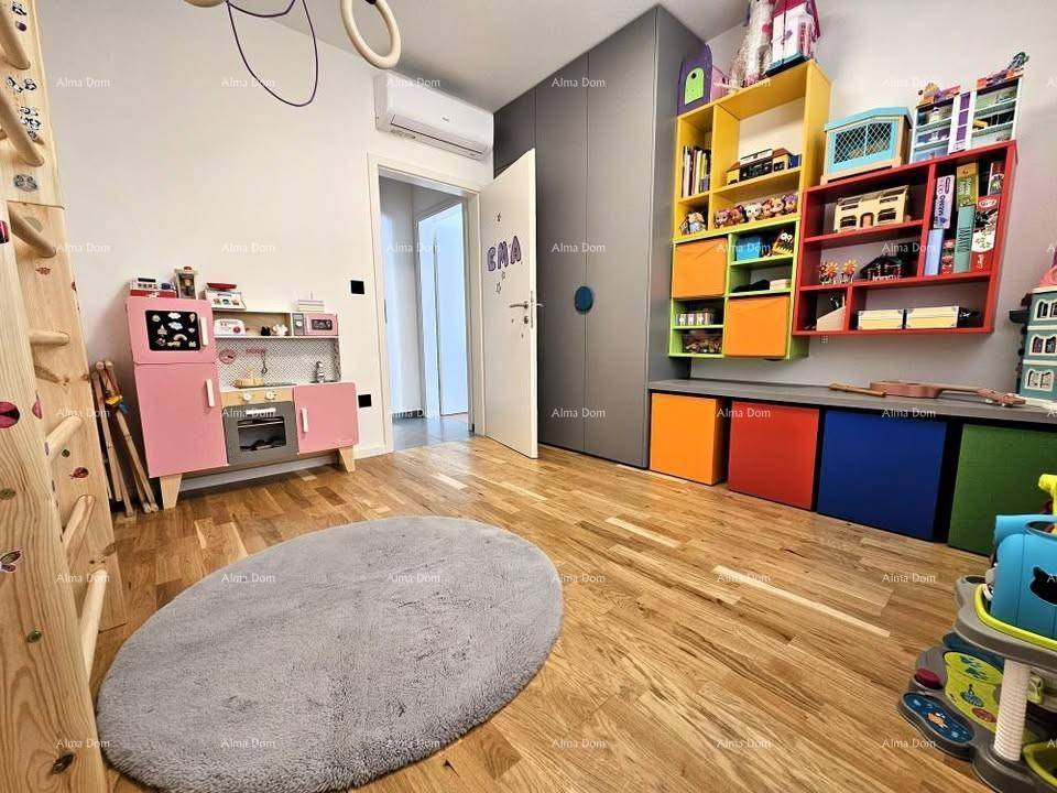 Stan se sastoji od dnevnog boravka i kuhinje koji su otvorenog tlocrta, tri spavaće sobe, kupaone, wc-a s vešerajem te lođe. Dnevni boravak, kuhinja, kupaona i wc imaju podno grijanje, a sve spavaće sobe i dnevni boravak imaju klimatizacijski uređaj.