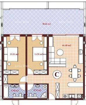 Apartman se nalazi 150 metara od plaže. Sastoji se od dnevnog boravka i kuhinje, 2 spavaće sobe, 2 kupatila, balkona. Ukupna površina 132,97 m2. Apartman se prodaje kompletno namješten.