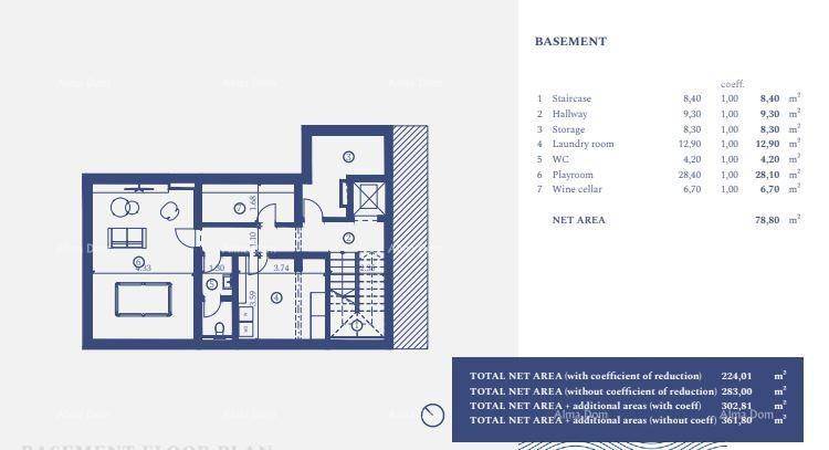 Neto površina vile 26 od 280 m2 uključuje podrum, suteren, prizemlje i kat.