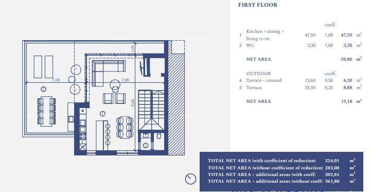 Neto površina vile 29 od 279,96 m2 uključuje podrum, suteren, prizemlje i kat.