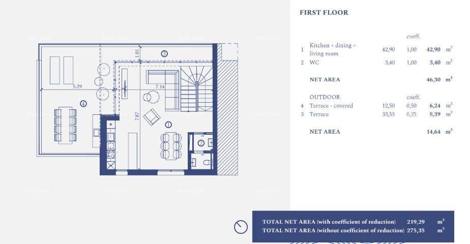 Neto površina vile 13 od 262,74 m2 uključuje suteren, prizemlje i kat.