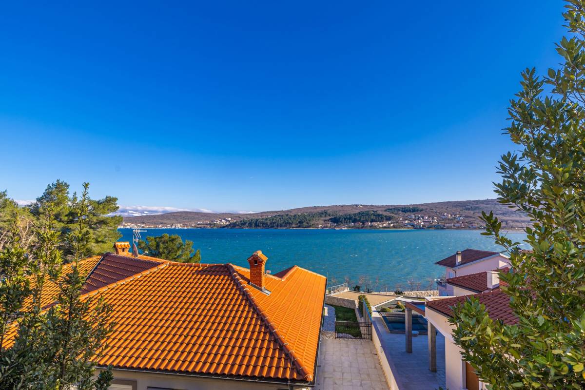 Gornja etaža nudi dodatnu privatnost s prostranom spavaćom sobom za četvero te fitness sobom s jacuzzijem, savršenim za opuštanje nakon dana provedenog na plaži. Terasa na katu pruža nevjerojatan panoramski pogled i opremljena je vanjskim tušem.