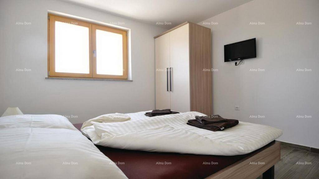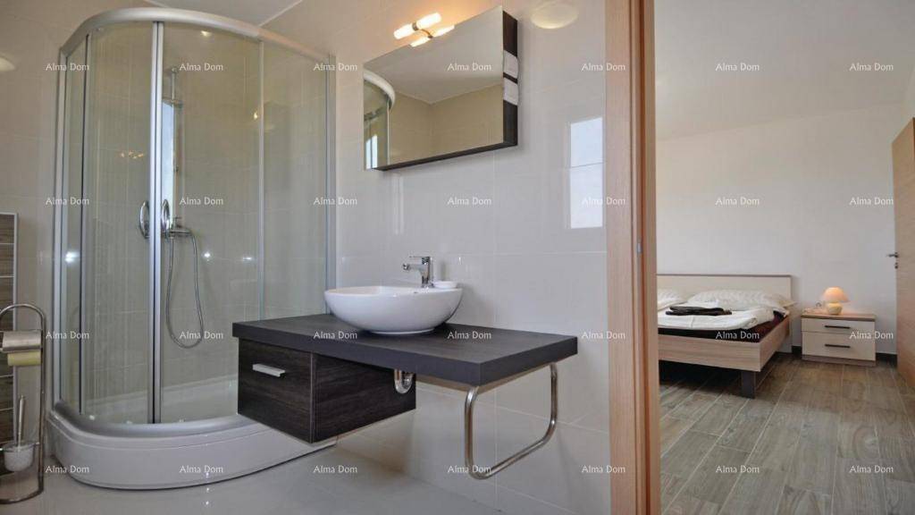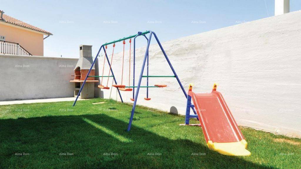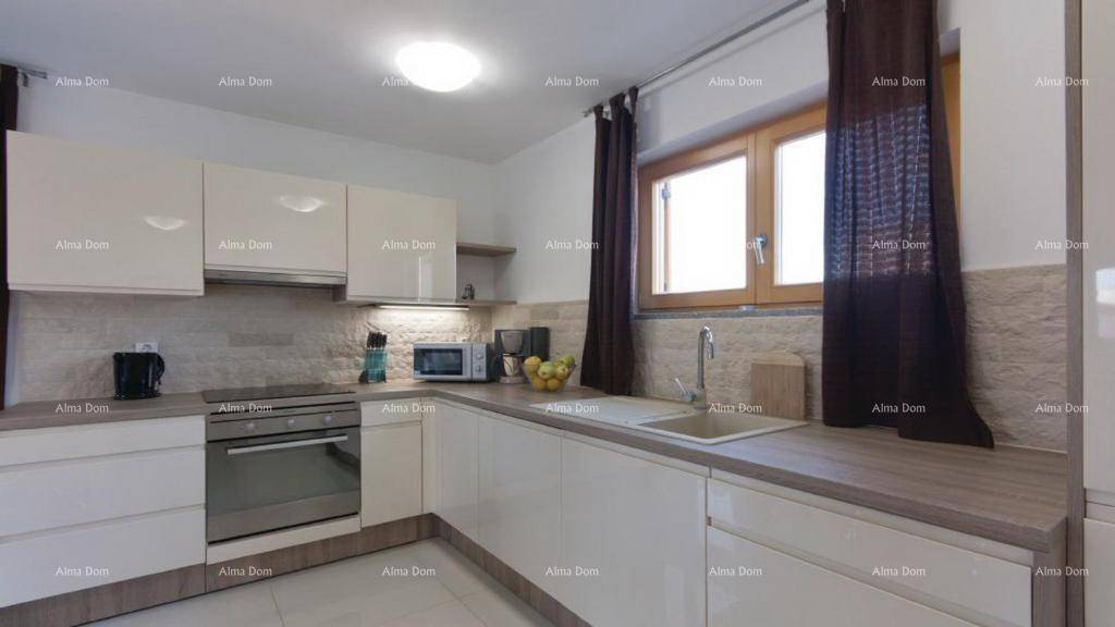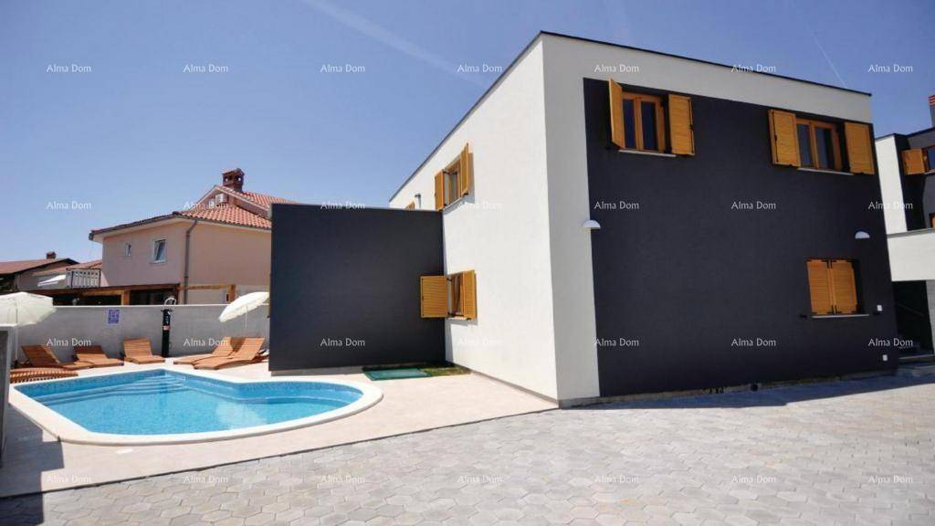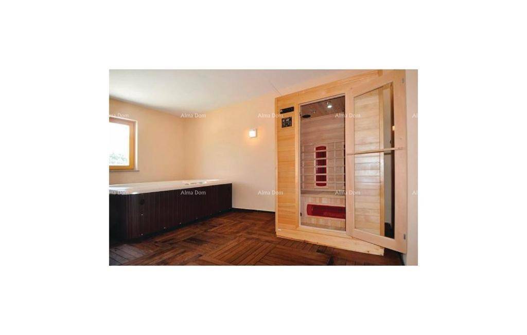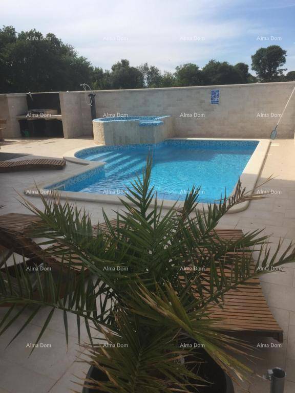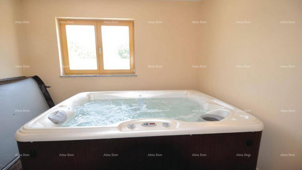 Kuća je veličine 350m2 koja se sastoji od 7 spavaćih soba i 7 kupaonica, dnevnog boravka i kuhinje. Isto tako raspolaže sa wellnessom u kojem se nalazi sauna , jacuzzi i igraona. Vanjski bazen je veličine 25m2.Vanjski bazen je veličine 28m2. Na kući su postavljeni solarni kolektori za toplu vodu.