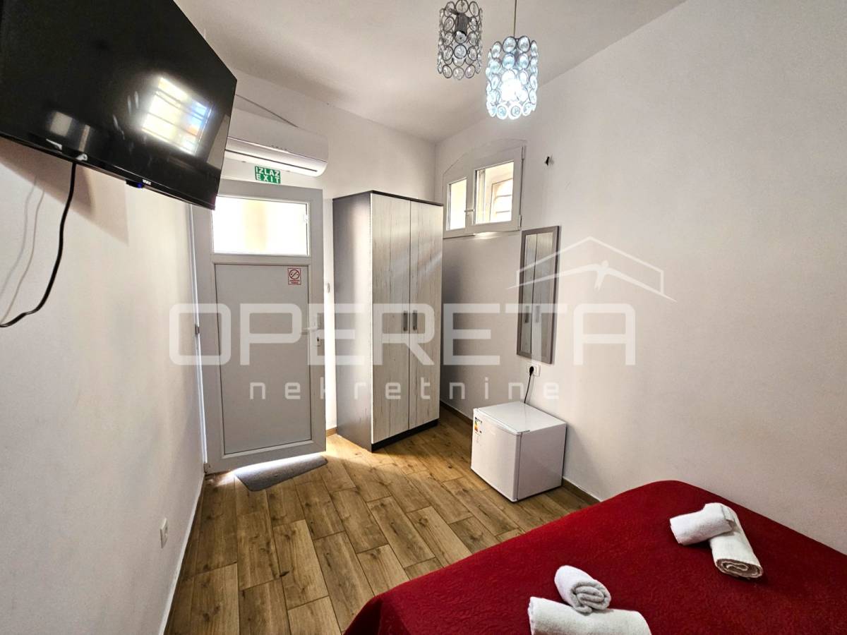 Ukupne površine 80,94 m2, prostor je etažiran kao poslovna jedinica koja se sastoji od hodnika, tri sanitarna čvora, dvije prostorije i čajne kuhinje. Trenutnim rasporedom funkcionalno je organiziran u tri odvojene smještajne jedinice, svaka s vlastitom kupaonicom s toaletom, uz dodatni pomoćni prostor koji služi kao kuhinja, soba, vešeraj i kupaonica s toaletom. Takva organizacija omogućuje višestruki prihod i maksimalnu iskoristivost kvadrature.