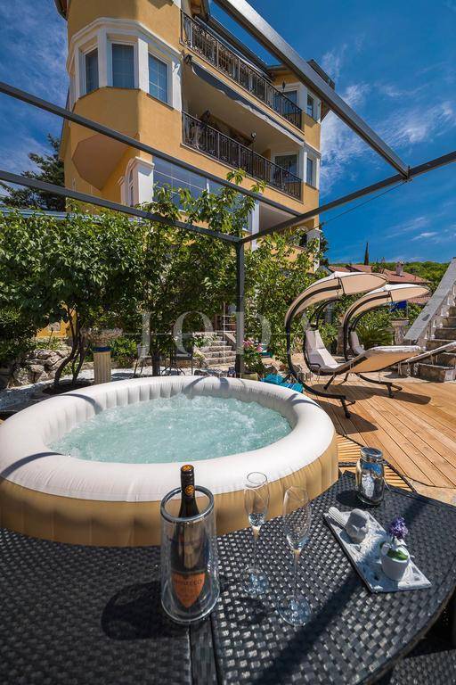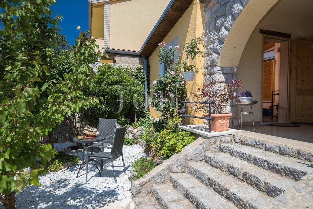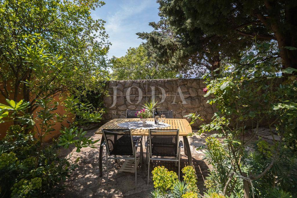 Smještena unutar potpuno ograđene i uređene okućnice sa velikim terasama i puno mediteranskog bilja.