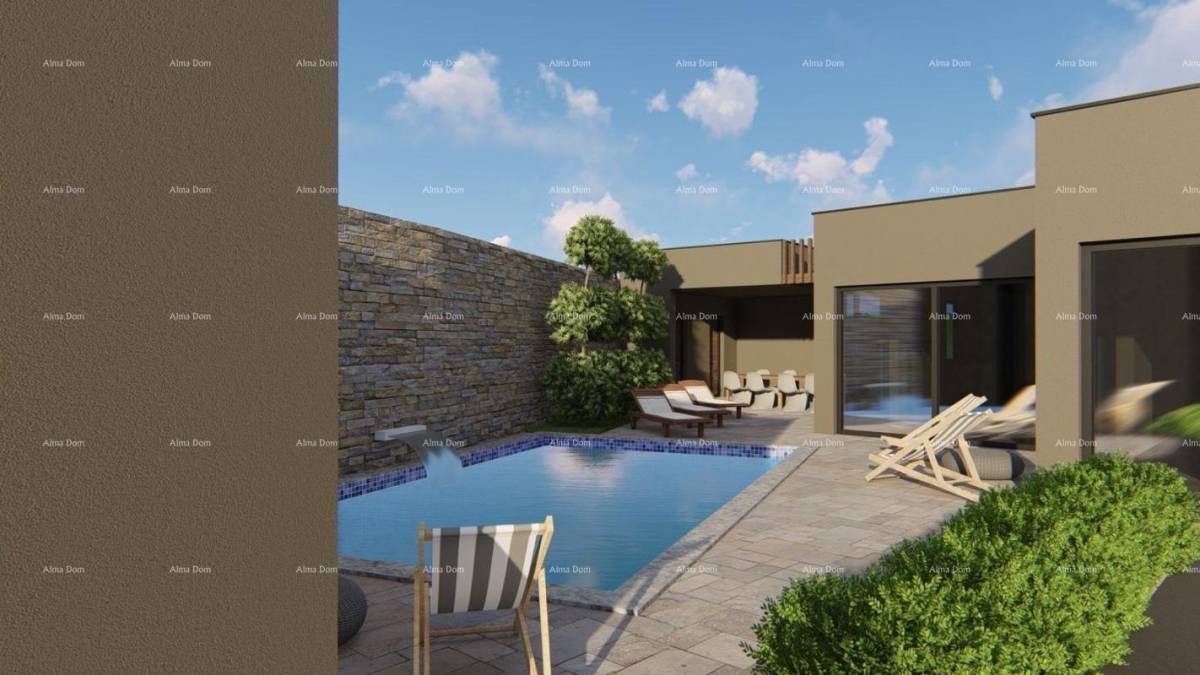 Vila, površine 112.10 m2, nalazi se u neposrednoj blizini centra grada i sastoji se od ulaza, hodnika, dnevnog boravka, kuhinje i blagovaone, 3 spavaće sobe, 3 kupaone i strojarnice.