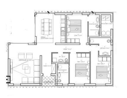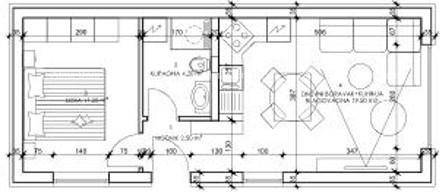 Apartman, površine 37.40 m2, sastoji se od hodnika, spavaće sobe, kupaone, dnevnog boravka s kuhinjom i blagavaonom.