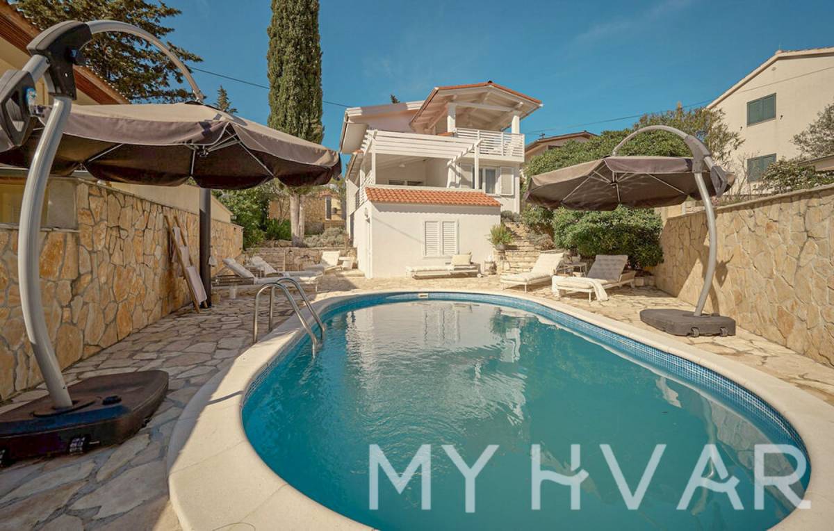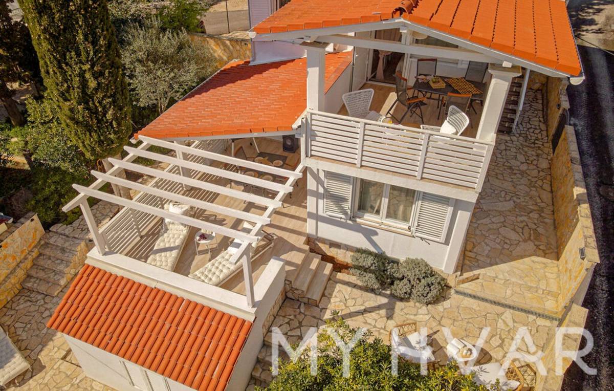 Doživite utjelovljenje primorskog života uz ovu prekrasnu kuću s bazenom, idealno smještenu u traženom dijelu Vrboske, samo nekoliko koraka od mora. Sastoji se od tri apartmana ukupne površine 107 m², plus prostrane terase od 32 m², ova nekretnina nudi obilje prostora i udobnosti.