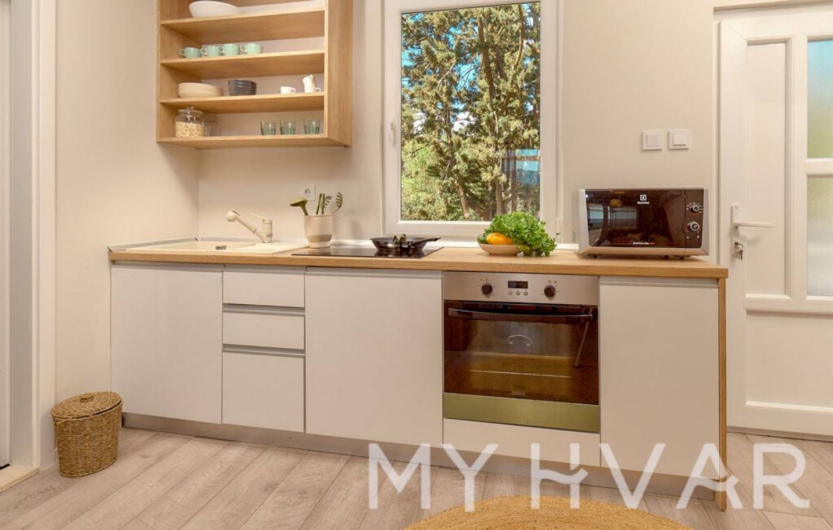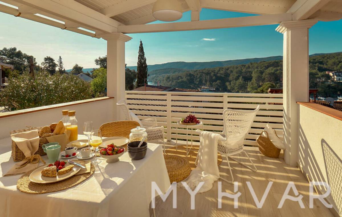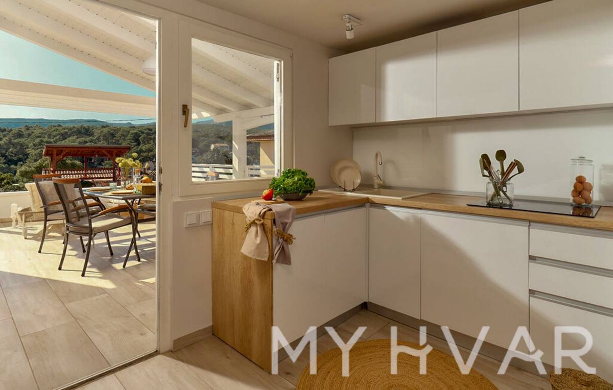 U suterenu se nalazi prigodna ostava i studio apartman s kupaonicom površine 26 m². Na prvom katu otkrijte apartman s dvije spavaće sobe, kuhinjom, dnevnim boravkom, dvije kupaonice i velikom terasom od 70 m². Na drugom katu nalazi se apartman sa spavaćom sobom, kuhinjom, blagovaonicom, kupaonicom i šarmantnom terasom od 43 m².