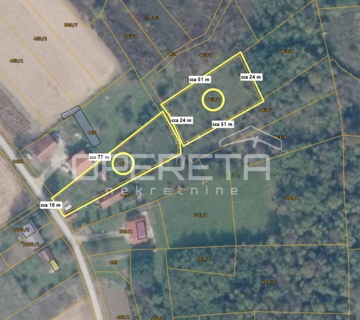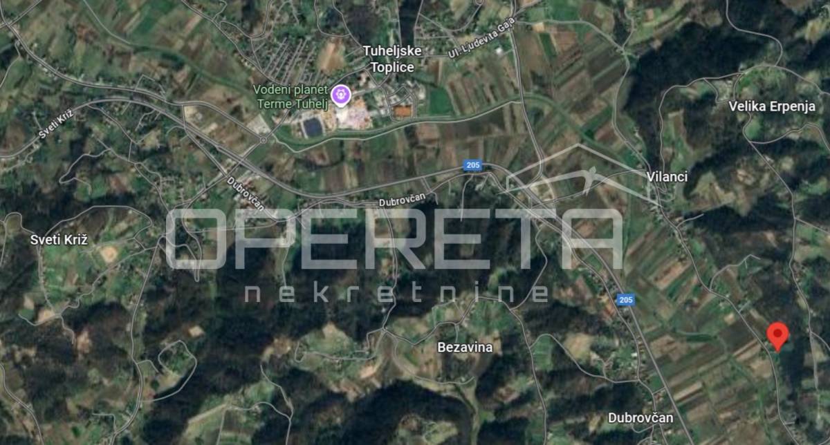Zemljište gotovo pravilnog pravokutnog oblika s blagim nagibom, u blizini Tuheljskih Toplica i Termi Tuhelj s pogledom na bazene. Sastoji od dvije čestice - svaka veličine 1341 m2, od kojih je jedna građevinske, a druga poljoprivredne namjene.