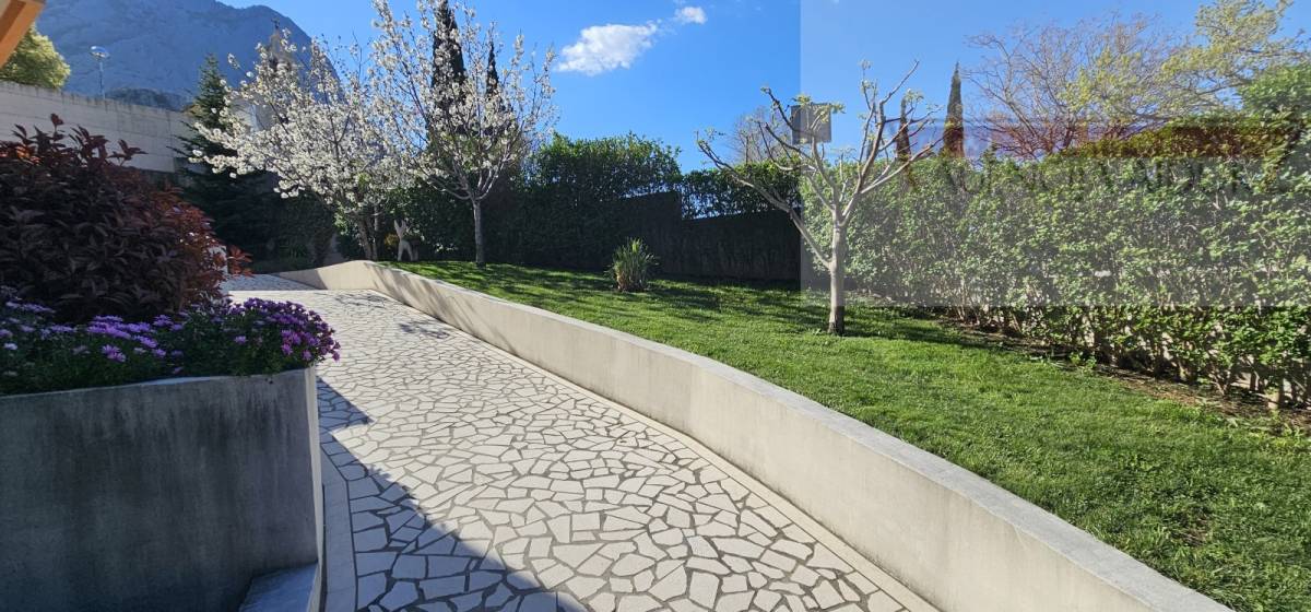 Prodaje se vrhunska villa površine 500 m2 smještena u mirnom predjelu Basta, udaljena od mora i centra Baške Vode 2km. Parcela ima ukupnu površinu od 842 m2 gdje se nalazi uređena okućnica sa velikom terasom savršenom za uživanje u panoramskom pogledu na more, otoke i planinu Biokovo.
