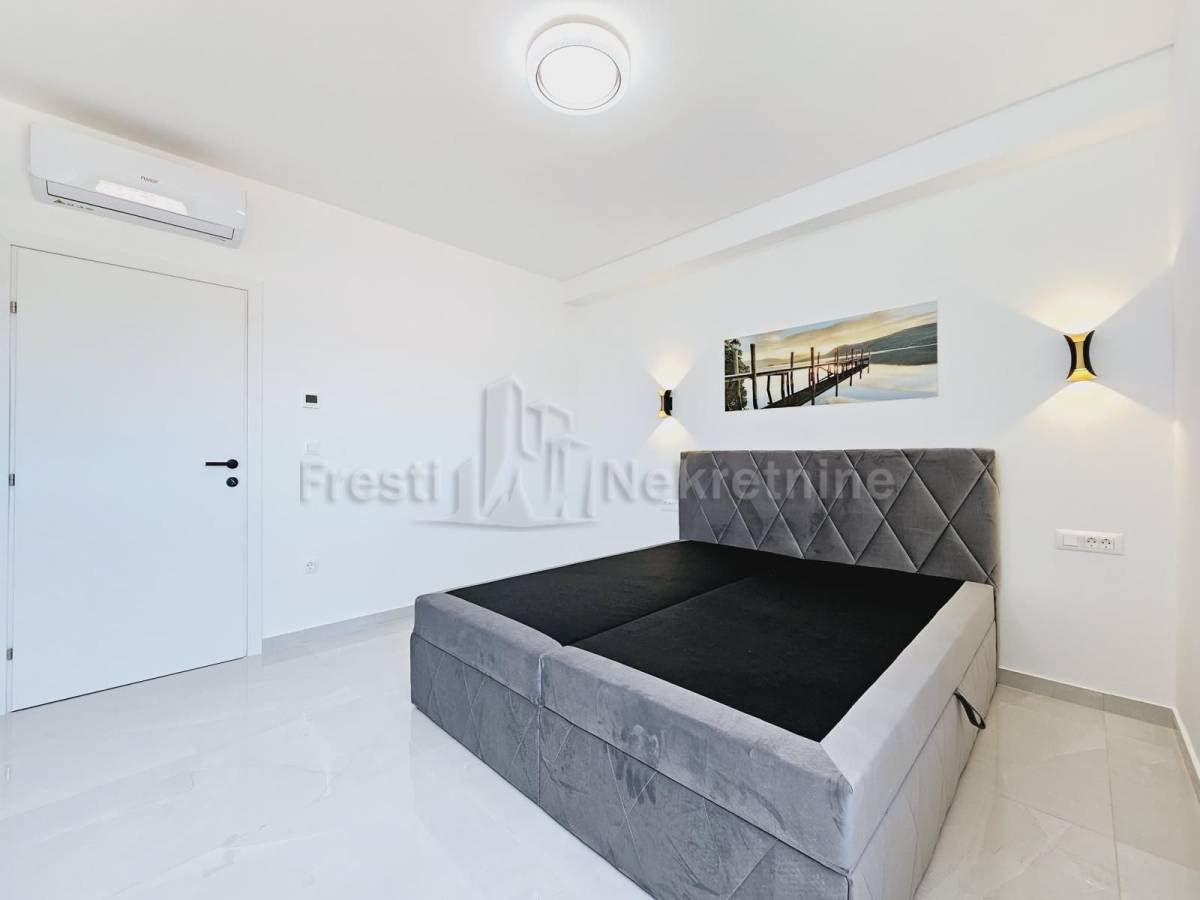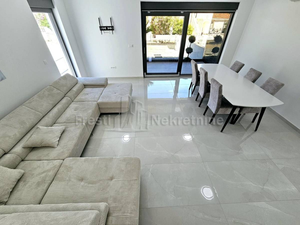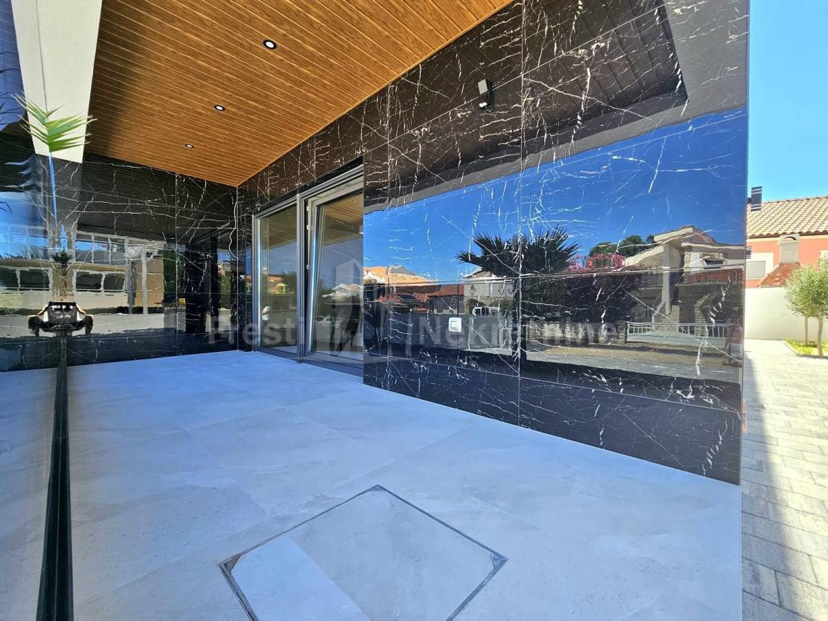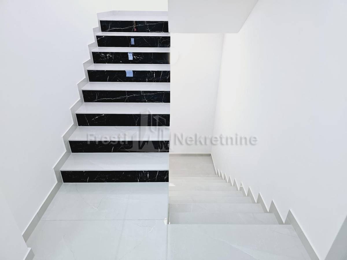 Ova elegantna i prostrana kuća prostire se na tri etaže: U prizemlju se nalazi prostrani dnevni boravak s otvorenom kuhinjom i blagovaonicom, kupaonica, ostava i natkrivena terasa. Na prvom katu se nalaze dvije spavaće sobe od kojih jedna ima svoju garderobu, kupaonicu, te izlaz na natkrivenu terasu. Na drugom katu se nalazi glavna spavaća soba sa vlastitom kupaonicom i prostranom terasom od 33,42 m2. Na terasi se nalazi ljetna kuhinja s roštiljem, a postoji mogućnost ugradnje jacuzzija. Kuća je izgrađena visokokvalitetnim materijalima, stolarija ima električne podizače roleta s Wi-Fi upravljanjem. Podno grijanje postavljeno je na svakoj etaži, a sve spavaće sobe i dnevni boravak bit će klimatizirani. Pripadaju joj dva parkirna mjesta. MATERIJALI ZA UGRADNJU PVC vanjska stolarija s troslojnim staklom, električnim roletama i komarnicima Ulazna vrata su protuprovalna, protupožarna Podne obloge su visokokvalitetne keramičke pločice u cijeloj kući Visokokvalitetne saniterije INSTALACIJE I OPREMA Podno grijanje koje je spojeno Wi-fi Hlađenje preko klima uređaja koji se nalaze u svim spavaćim sobama kao i u dnevnom boravku Video portafon Zasebni priključak, vode, struje i kanalizacije LOKACIJA Nalazi se na samo 90m od mora odnosno nekoliko minuta hoda. Na mirnoj lokaciji u neposrednoj blizini se nalaze svi sadržaji potrebni za svakodnevni život i ugodan odmor poput dućana, restorana i kafića. Svaki kat ima natkrivenu terasu sa koje se pruža predivan pogled na more, dok terasa na drugom katu ima izvedene instalacije struje i vode, rostilj, kuhinja, jacuzzi. Dvojna kuća ima vlastite priključke. Planirano vrijeme useljenja 6/2024g. VLASNIŠTVO uredno, 1/1 bez tereta ______________________________________________________