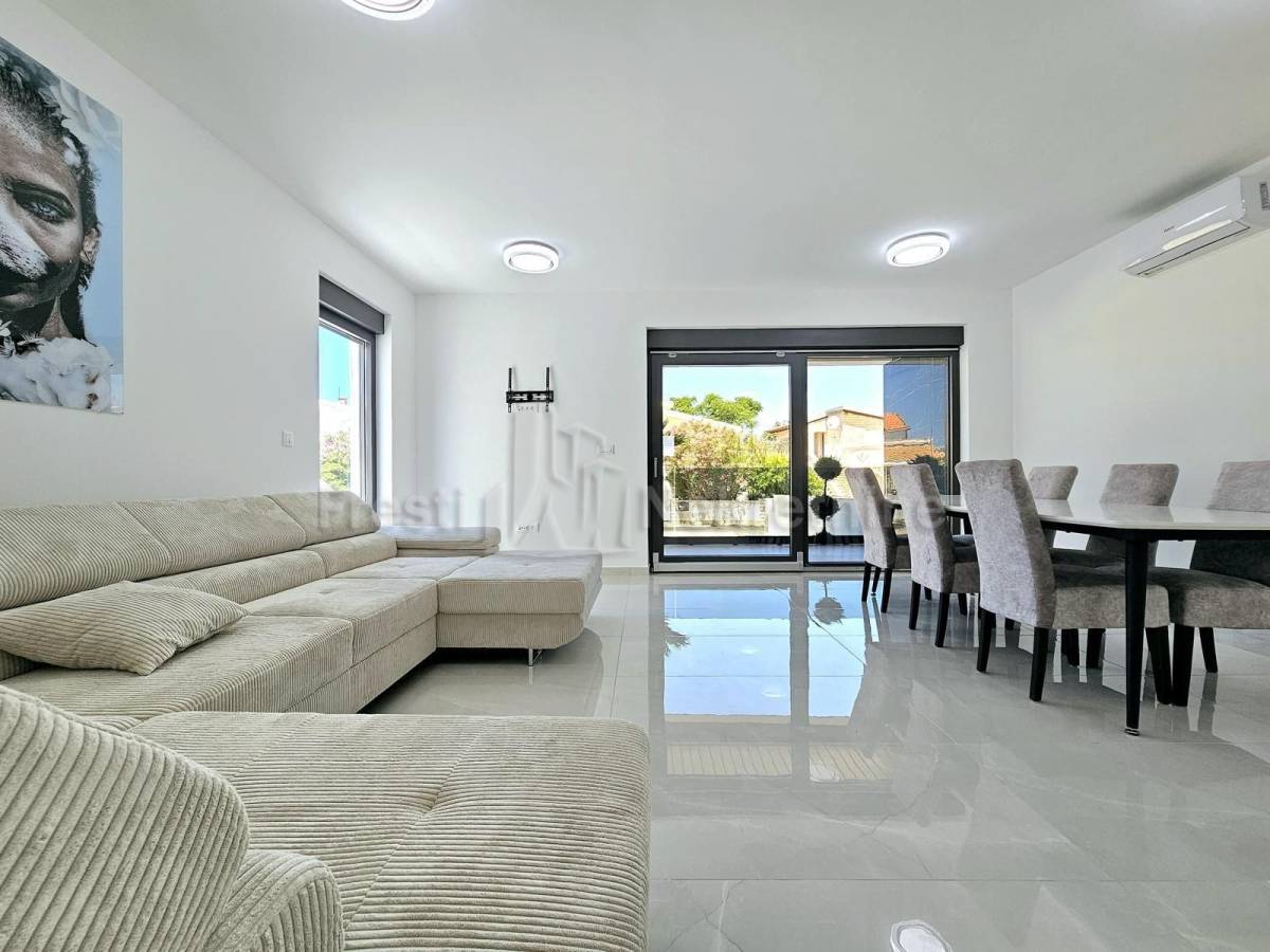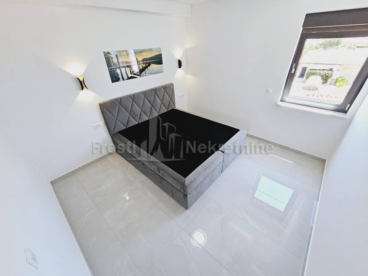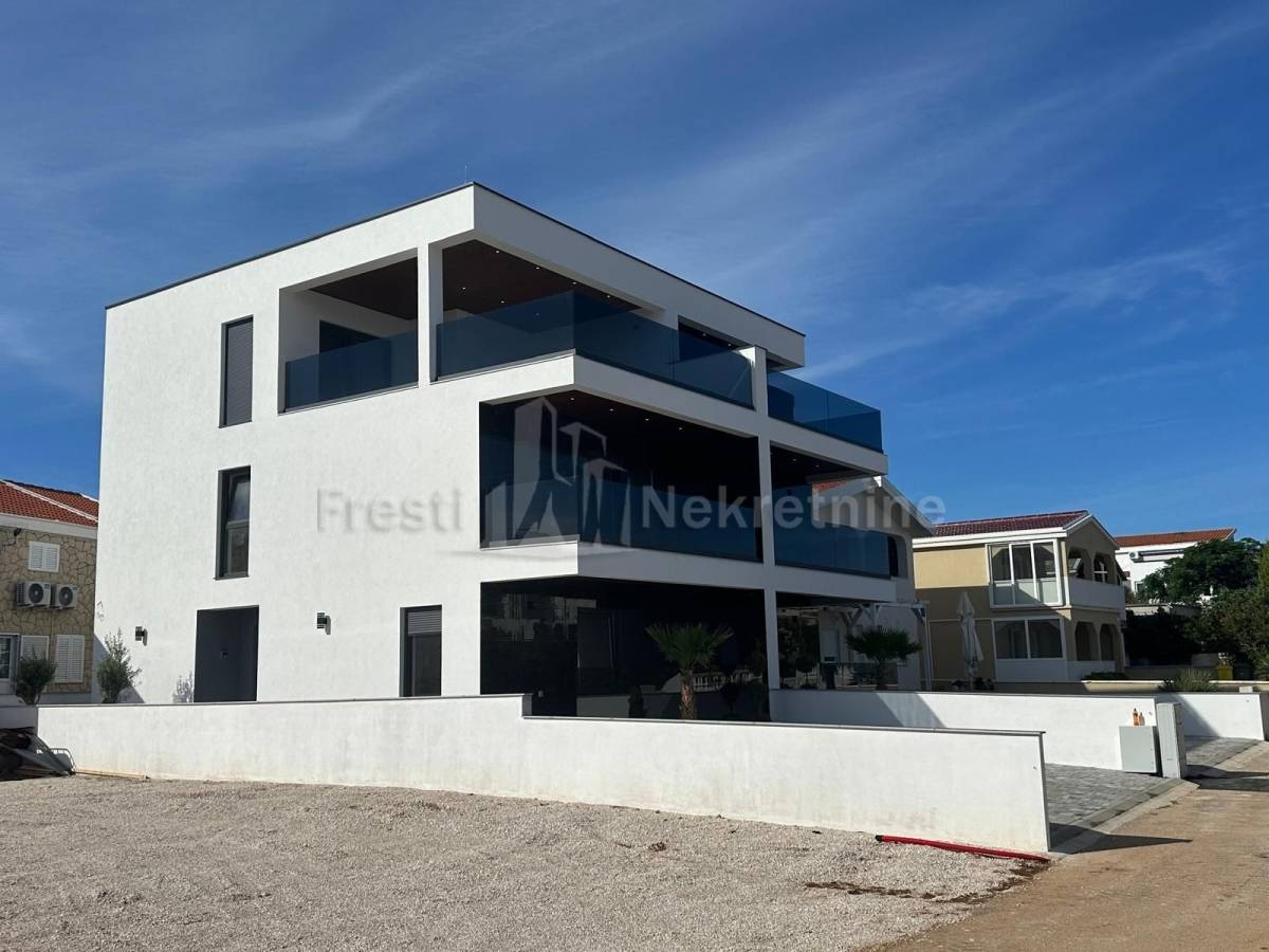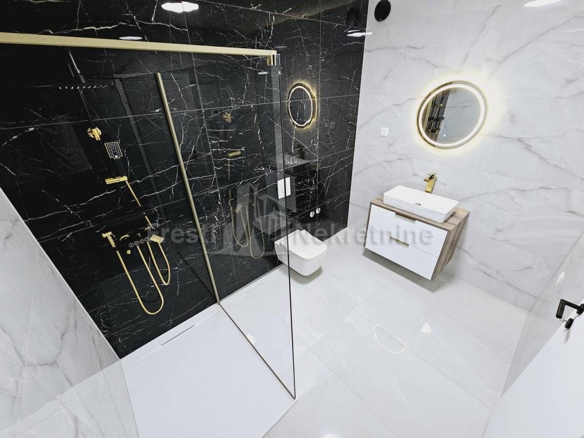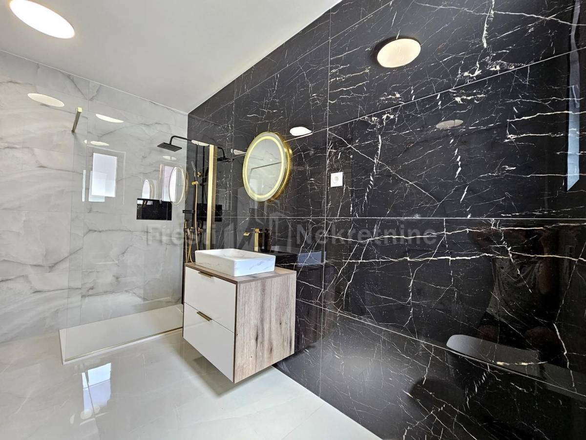 Ova elegantna i prostrana kuća prostire se na tri etaže: U prizemlju se nalazi prostrani dnevni boravak s otvorenom kuhinjom i blagovaonicom, kupaonica, ostava i natkrivena terasa. Na prvom katu se nalaze dvije spavaće sobe od kojih jedna ima svoju garderobu, kupaonicu, te izlaz na natkrivenu terasu. Na drugom katu se nalazi glavna spavaća soba sa vlastitom kupaonicom i prostranom terasom od 33,42 m2. Na terasi se nalazi ljetna kuhinja s roštiljem, a postoji mogućnost ugradnje jacuzzija. Kuća je izgrađena visokokvalitetnim materijalima, stolarija ima električne podizače roleta s Wi-Fi upravljanjem. Podno grijanje postavljeno je na svakoj etaži, a sve spavaće sobe i dnevni boravak bit će klimatizirani. Pripadaju joj dva parkirna mjesta. MATERIJALI ZA UGRADNJU PVC vanjska stolarija s troslojnim staklom, električnim roletama i komarnicima Ulazna vrata su protuprovalna, protupožarna Podne obloge su visokokvalitetne keramičke pločice u cijeloj kući Visokokvalitetne saniterije INSTALACIJE I OPREMA Podno grijanje koje je spojeno Wi-fi Hlađenje preko klima uređaja koji se nalaze u svim spavaćim sobama kao i u dnevnom boravku Video portafon Zasebni priključak, vode, struje i kanalizacije LOKACIJA Nalazi se na samo 90m od mora odnosno nekoliko minuta hoda. Na mirnoj lokaciji u neposrednoj blizini se nalaze svi sadržaji potrebni za svakodnevni život i ugodan odmor poput dućana, restorana i kafića. Svaki kat ima natkrivenu terasu sa koje se pruža predivan pogled na more, dok terasa na drugom katu ima izvedene instalacije struje i vode, rostilj, kuhinja, jacuzzi. Dvojna kuća ima vlastite priključke. Planirano vrijeme useljenja 6/2024g. VLASNIŠTVO uredno, 1/1 bez tereta ______________________________________________________