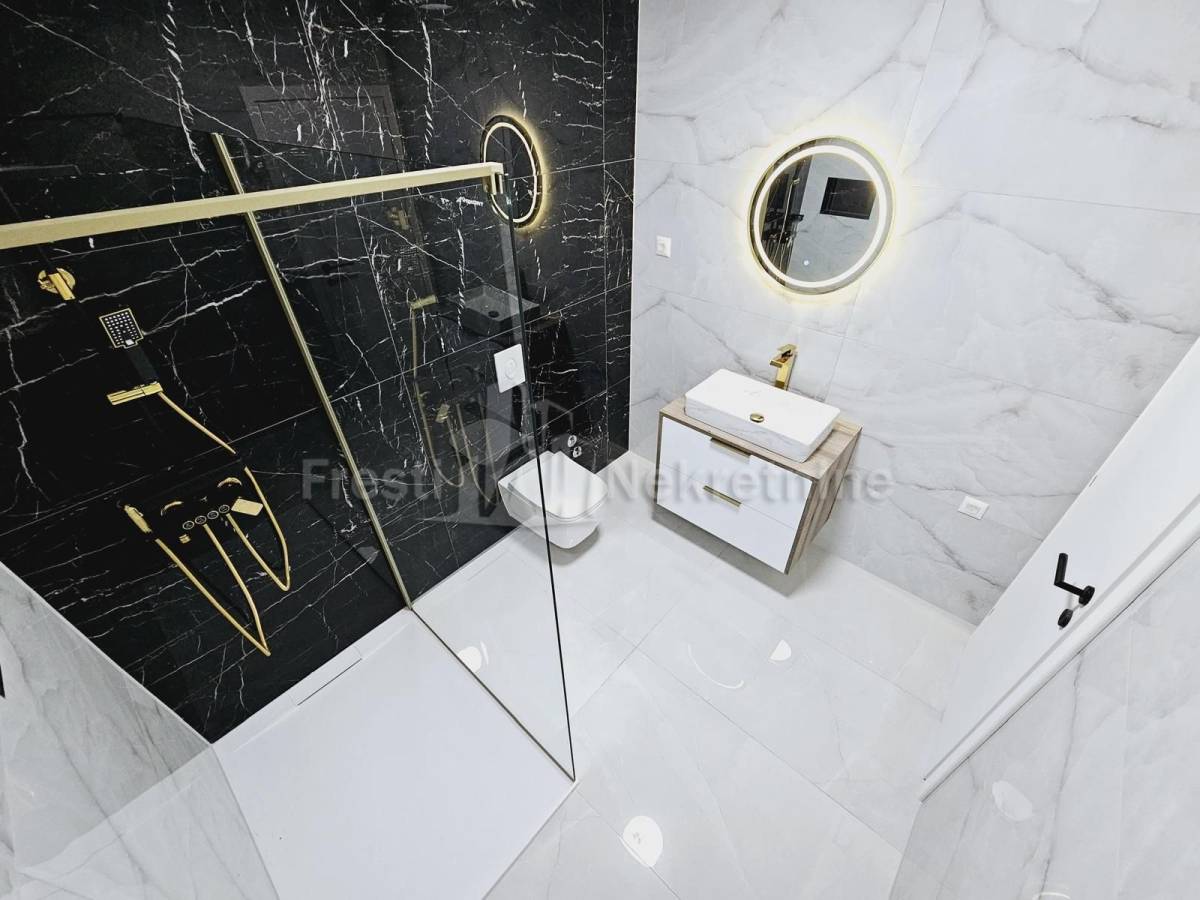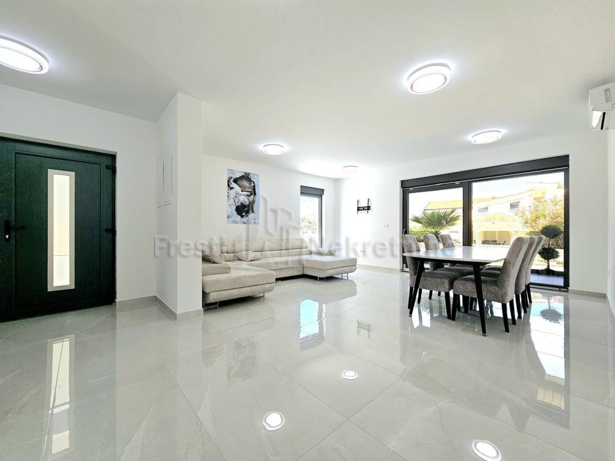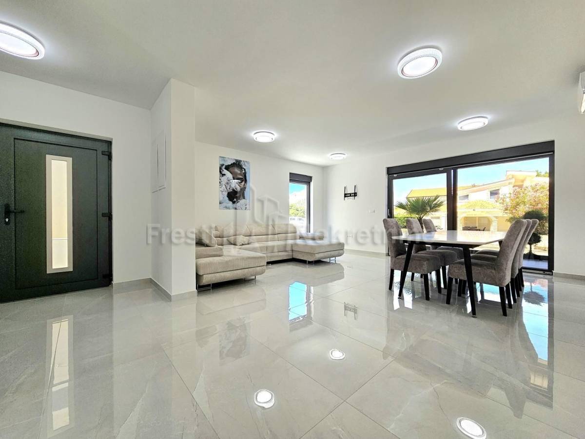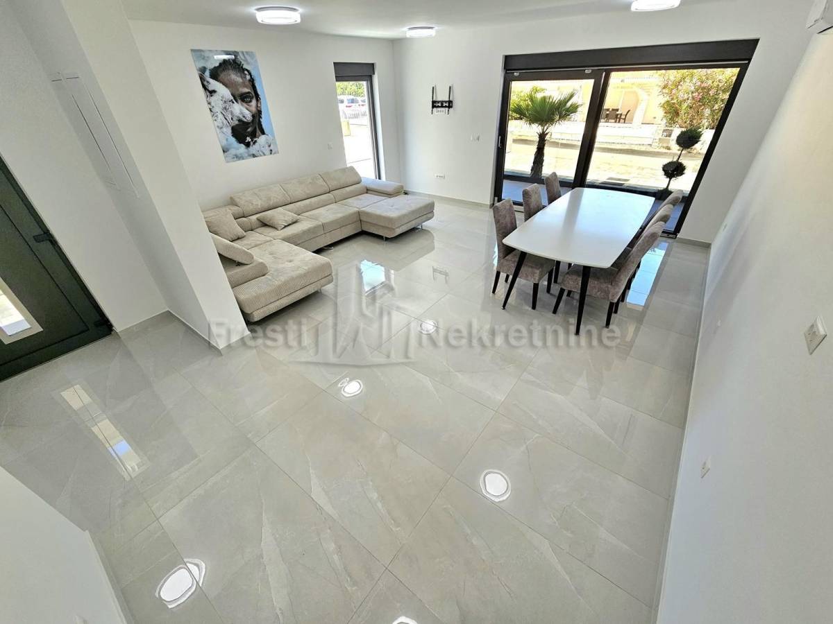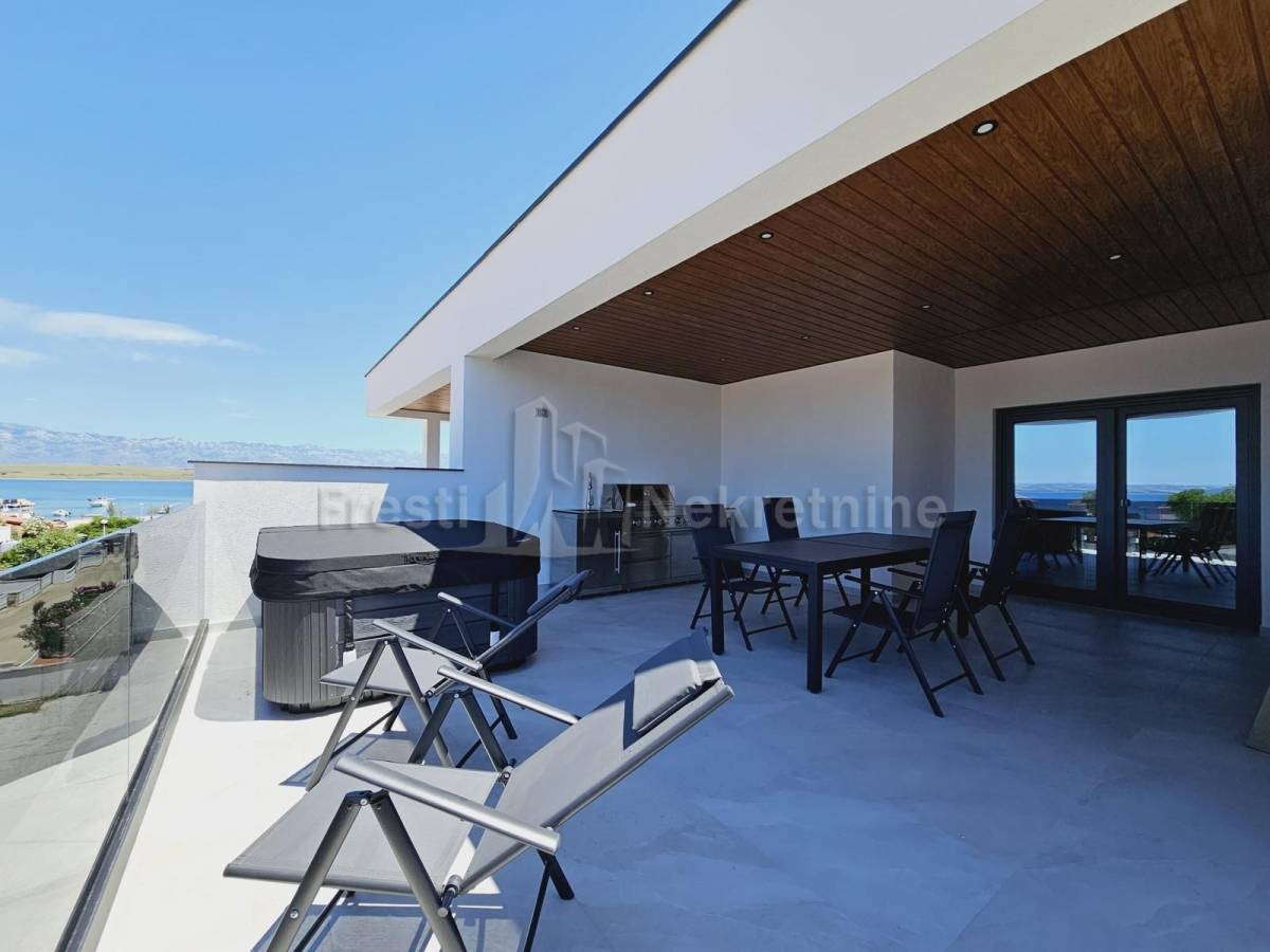 Ova elegantna i prostrana kuća prostire se na tri etaže: U prizemlju se nalazi prostrani dnevni boravak s otvorenom kuhinjom i blagovaonicom, kupaonica, ostava i natkrivena terasa. Na prvom katu se nalaze dvije spavaće sobe od kojih jedna ima svoju garderobu, kupaonicu, te izlaz na natkrivenu terasu. Na drugom katu se nalazi glavna spavaća soba sa vlastitom kupaonicom i prostranom terasom od 33,42 m2. Na terasi se nalazi ljetna kuhinja s roštiljem, a postoji mogućnost ugradnje jacuzzija. Kuća je izgrađena visokokvalitetnim materijalima, stolarija ima električne podizače roleta s Wi-Fi upravljanjem. Podno grijanje postavljeno je na svakoj etaži, a sve spavaće sobe i dnevni boravak bit će klimatizirani. Pripadaju joj dva parkirna mjesta. MATERIJALI ZA UGRADNJU PVC vanjska stolarija s troslojnim staklom, električnim roletama i komarnicima Ulazna vrata su protuprovalna, protupožarna Podne obloge su visokokvalitetne keramičke pločice u cijeloj kući Visokokvalitetne saniterije INSTALACIJE I OPREMA Podno grijanje koje je spojeno Wi-fi Hlađenje preko klima uređaja koji se nalaze u svim spavaćim sobama kao i u dnevnom boravku Video portafon Zasebni priključak, vode, struje i kanalizacije LOKACIJA Nalazi se na samo 90m od mora odnosno nekoliko minuta hoda. Na mirnoj lokaciji u neposrednoj blizini se nalaze svi sadržaji potrebni za svakodnevni život i ugodan odmor poput dućana, restorana i kafića. Svaki kat ima natkrivenu terasu sa koje se pruža predivan pogled na more, dok terasa na drugom katu ima izvedene instalacije struje i vode, rostilj, kuhinja, jacuzzi. Dvojna kuća ima vlastite priključke. Planirano vrijeme useljenja 6/2024g. VLASNIŠTVO uredno, 1/1 bez tereta ______________________________________________________