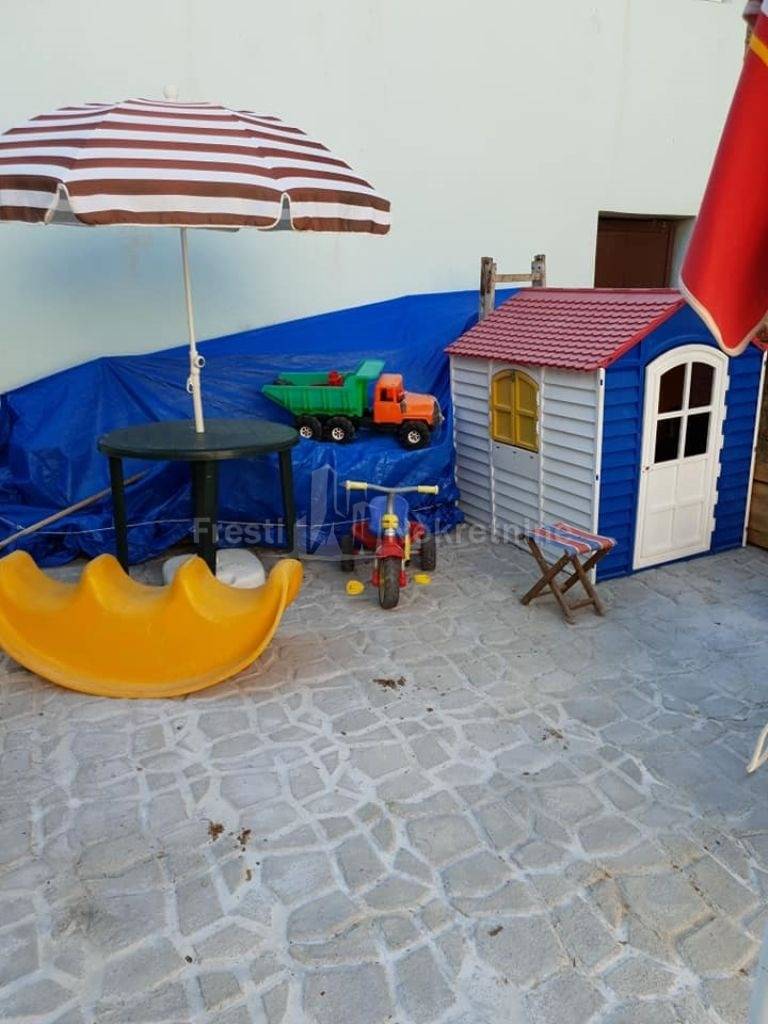 Okućnica je lijepo uređena i održavana a se sastoji od velikog parkinga ukupne površine 116 m2 i ograđenog dječjeg igrališta površine 35 m2.